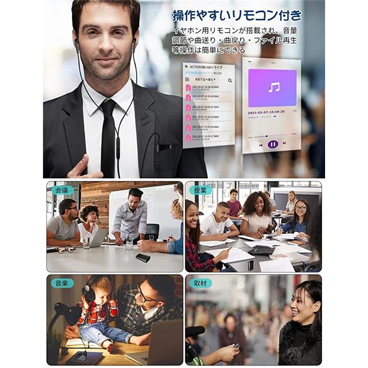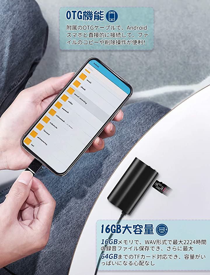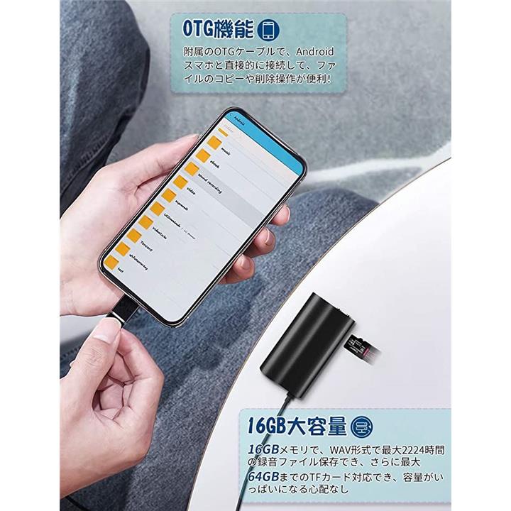 ・「MP3 player&OTG対応&録音日時記録可能」ポケットに収まるコンパクトなボイスレコーダーは付属のUSBケーブルを使ってパソコンと接続すれば、録音ファイルやMP3データを簡単に再生でき、MP3/WAVなどの再生音楽形式に対応でき、ボイスレコーダーだけではなく、MP3 playerとしても使えいただけます。