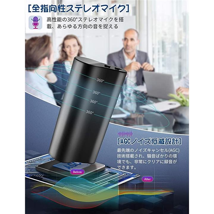 ・「全指向性マイク&ボイスレコーダー」本ICレコーダーは、360°方向の音を捉える「高性能の全指向性ステレオマイク」を搭載され、自分の音だけでなく広範囲にたっぷり録音でき、臨場感ある録音により、複数人が話すような会議でも、誰が話しているのか判別しやすくなります。