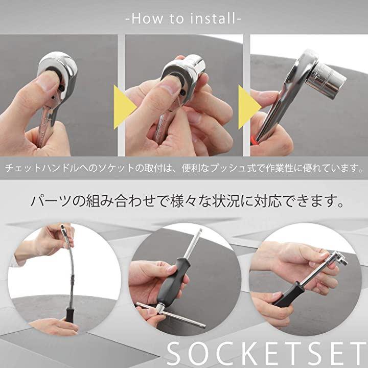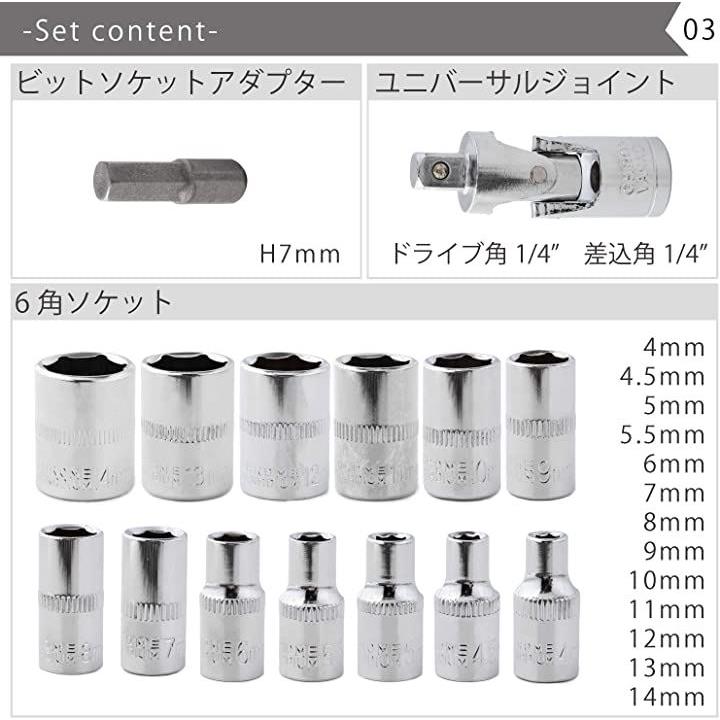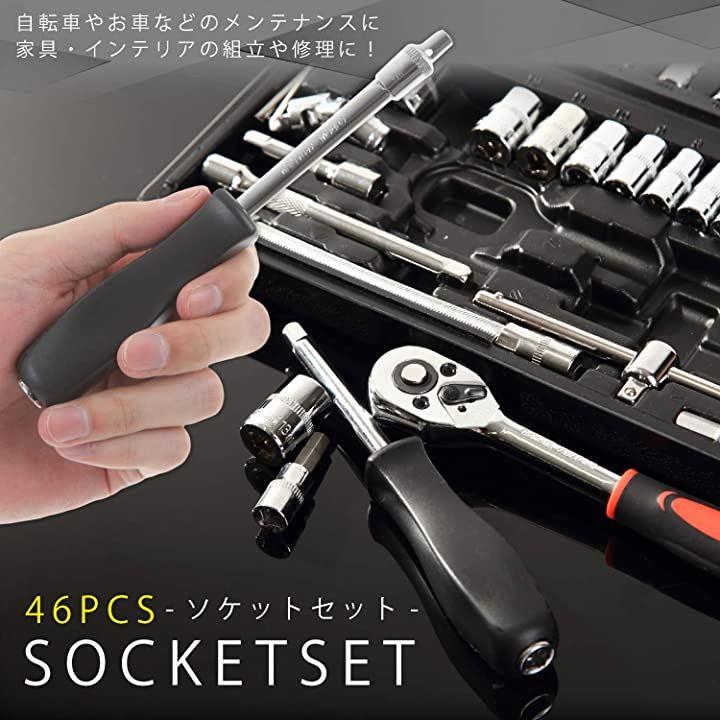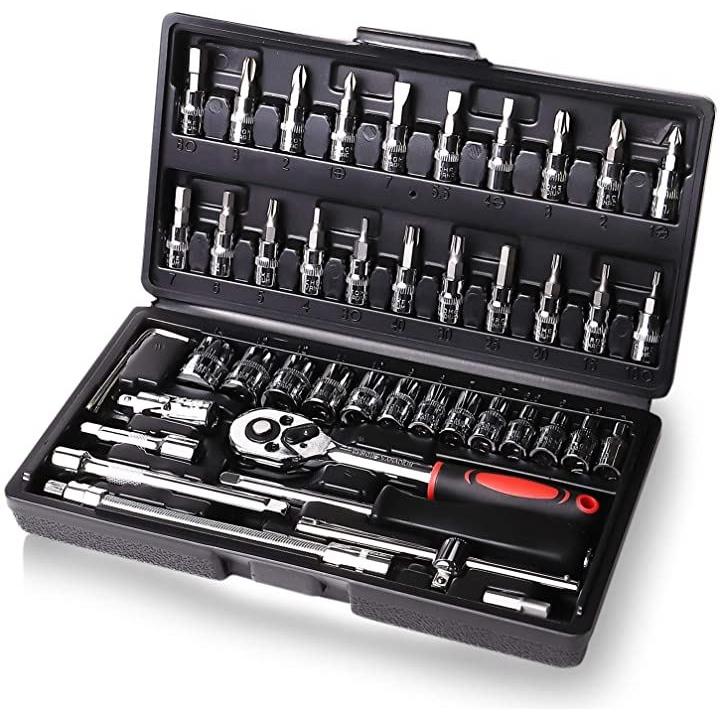互換品 ラチェットレンチ ソケットレンチ 工具セット 46pcs 差込角6.3mm 1/4 インチ