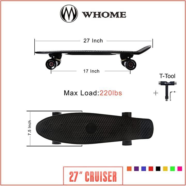 プロ スケートボード 27インチ クルーザー スケボー 大人 子供用 初心者用 Tツール付き ブラック