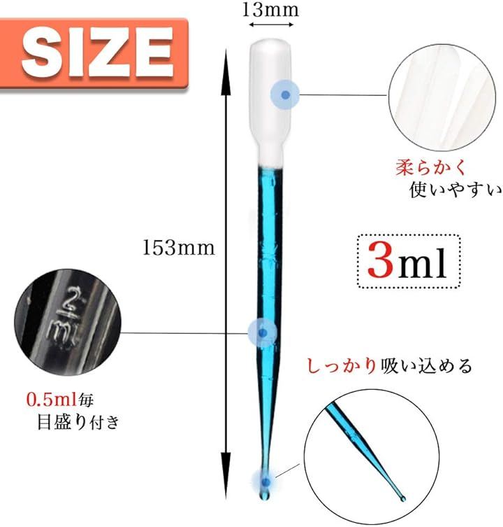 スポイト 使い捨て 200本 ピペット 目盛り付き 透明 プラスチック製