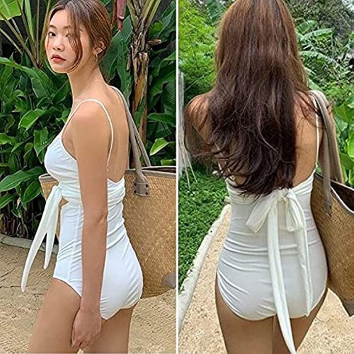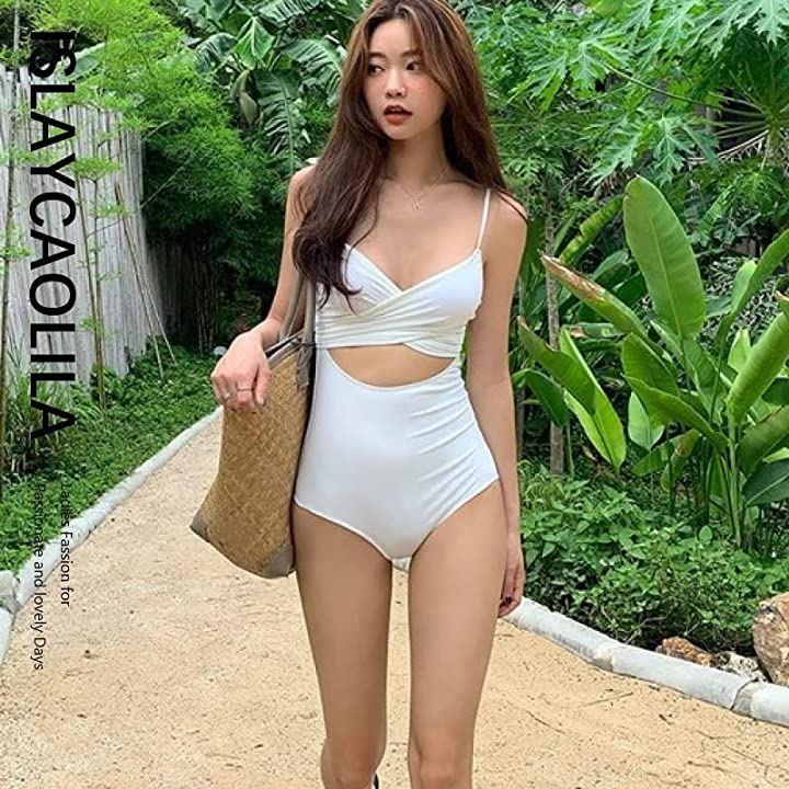 アイラカリラ カシュクール ワンピース 水着 リボン ウエスト 空き 体型カバー 単色 ビーチウエア スイムウエア レディース XL ライトグレー