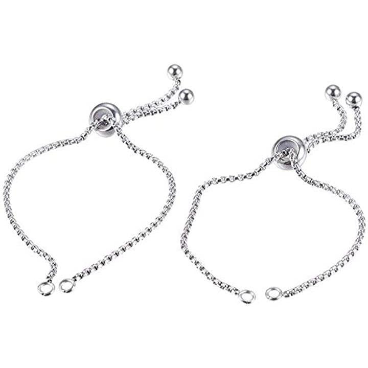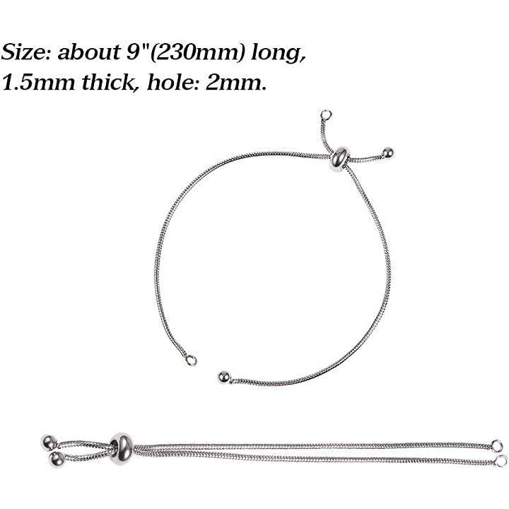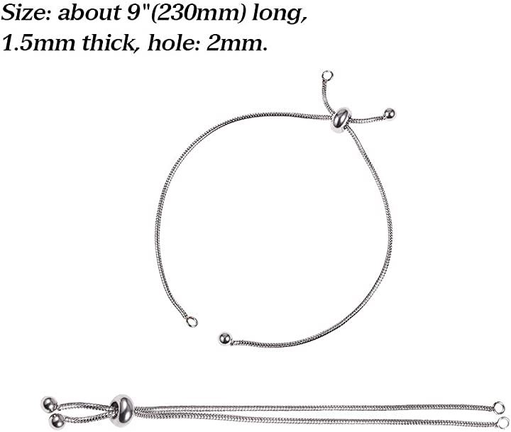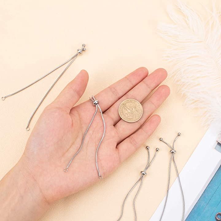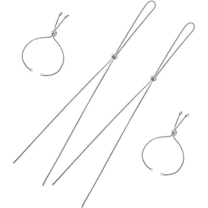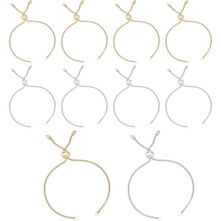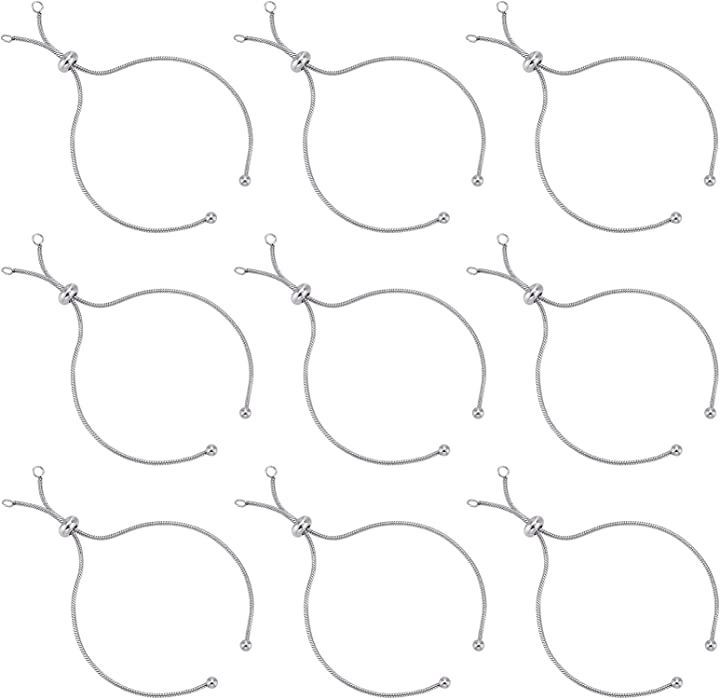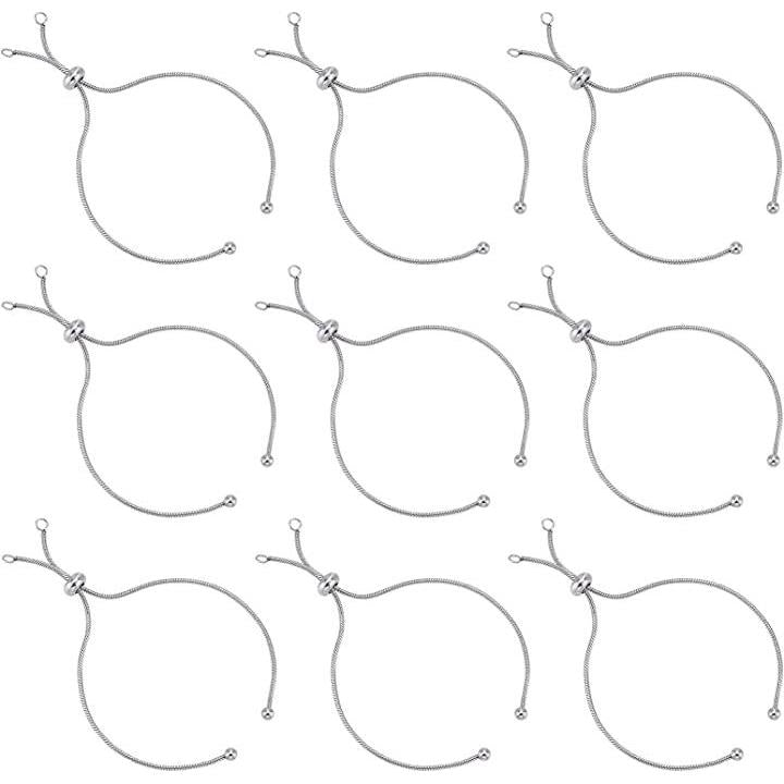 約10本 23cm 調整可能ブレスレット 304ステンレス製 スライダーブレスレット ボロチェーン 銀色 シルバー