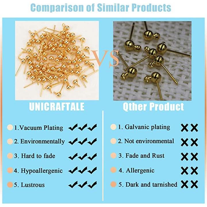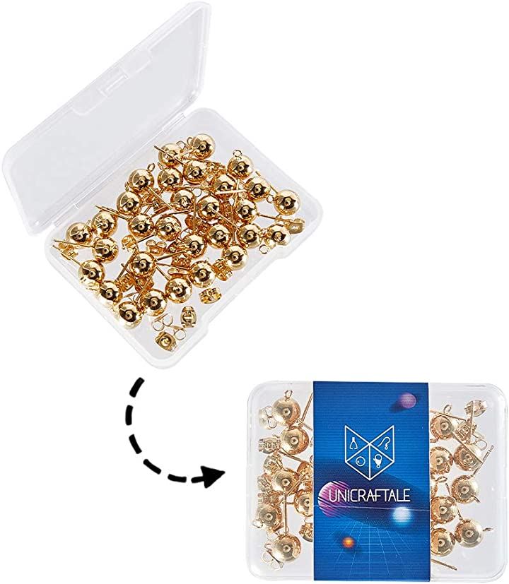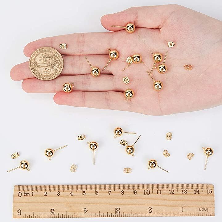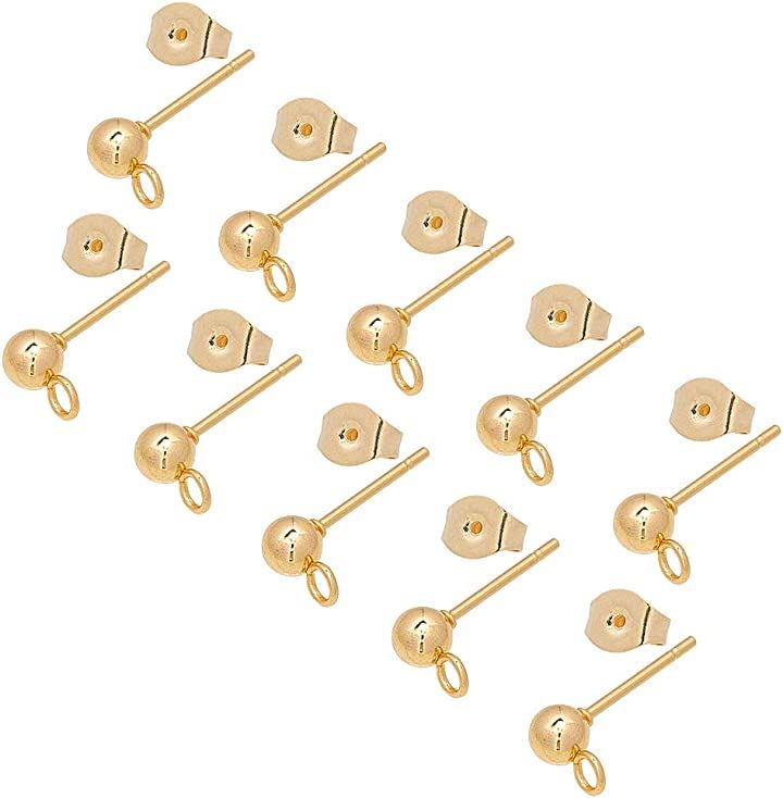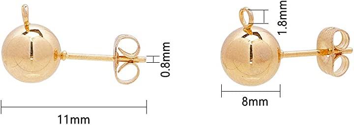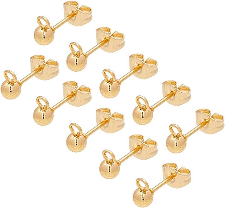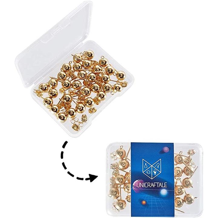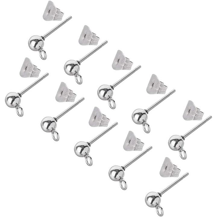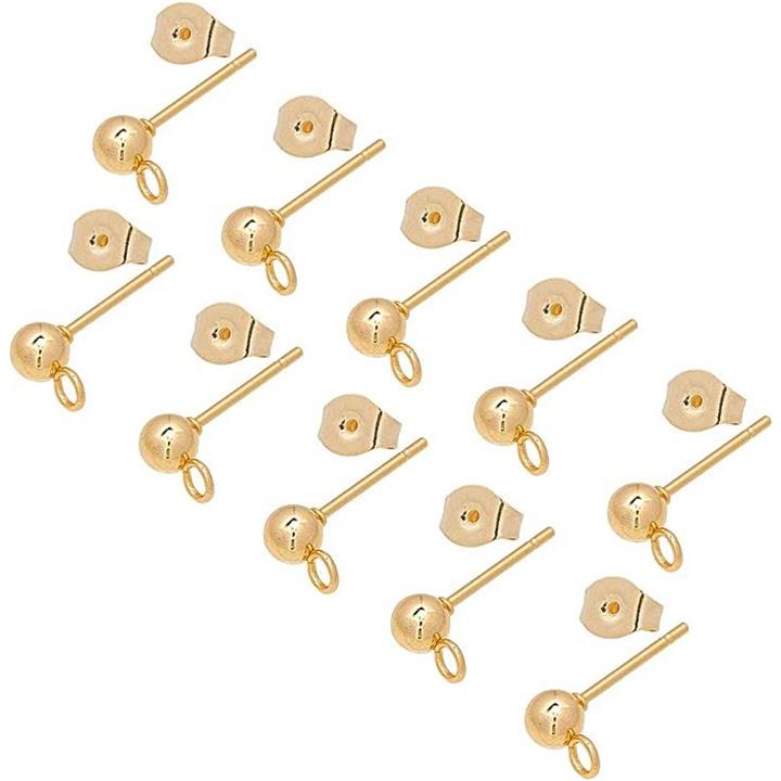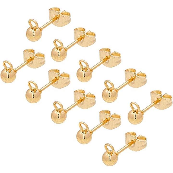 50個 25ペア ボール4mm 丸玉ピアス 304ステンレス製スタッドイヤリングパーツ カン付き カン2mm