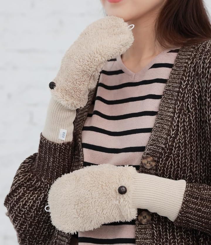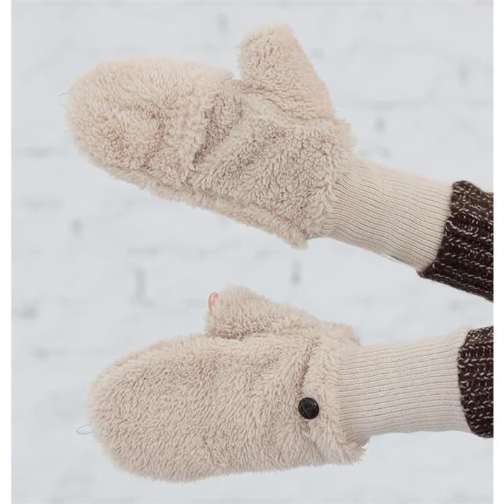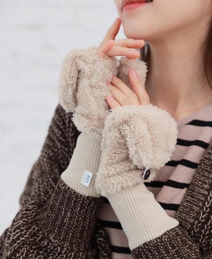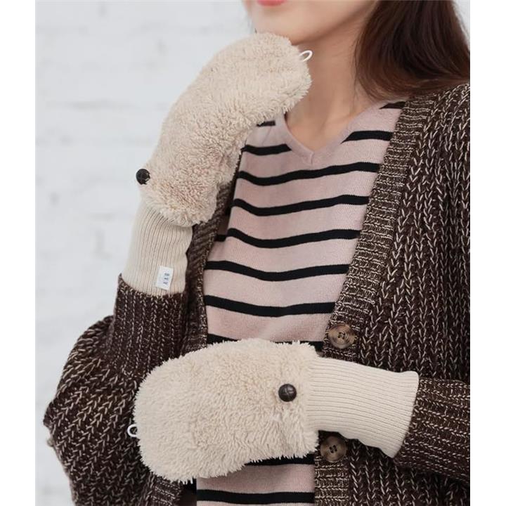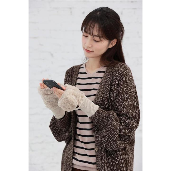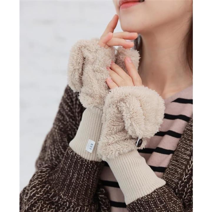 ボア フード ニット カウス 手袋 外も 内も ふわふわ モコモコ レディース ファー ロゴケース付