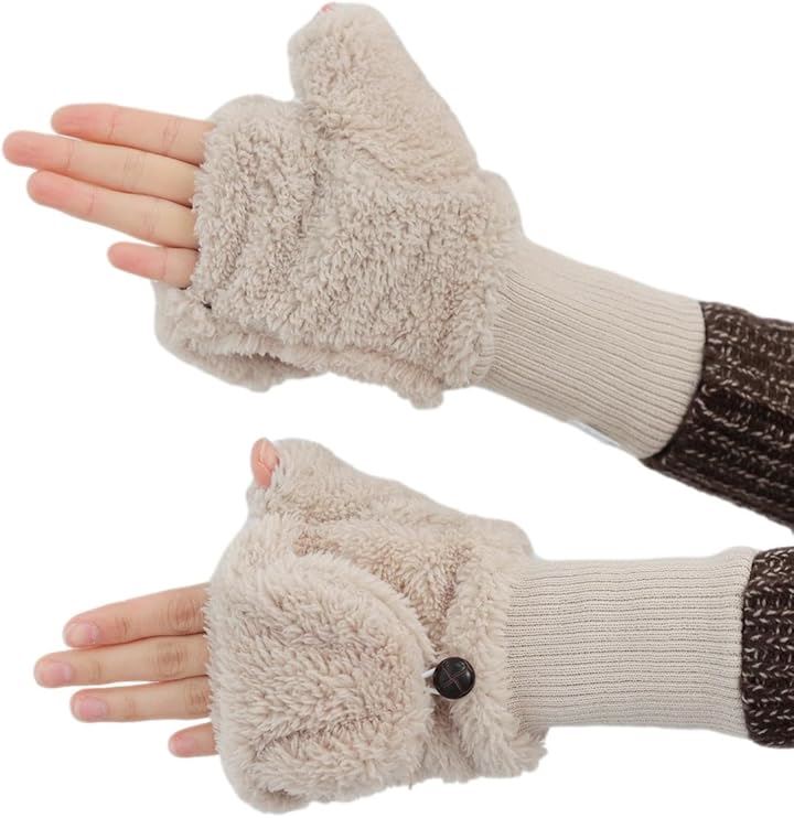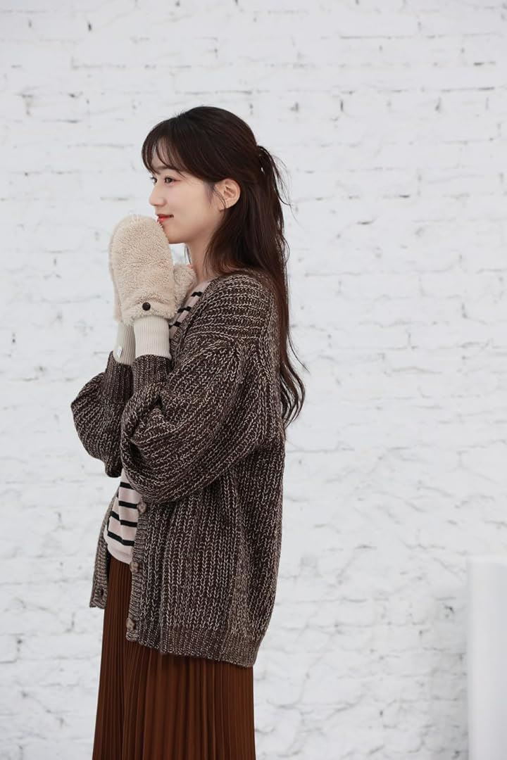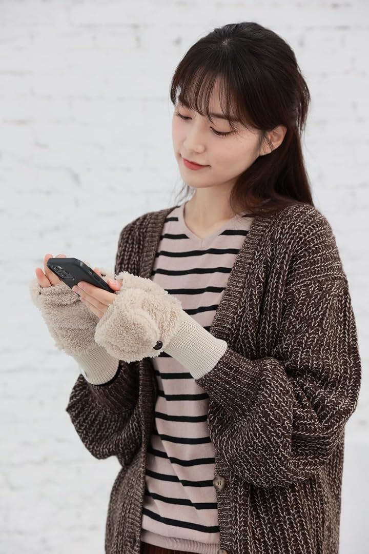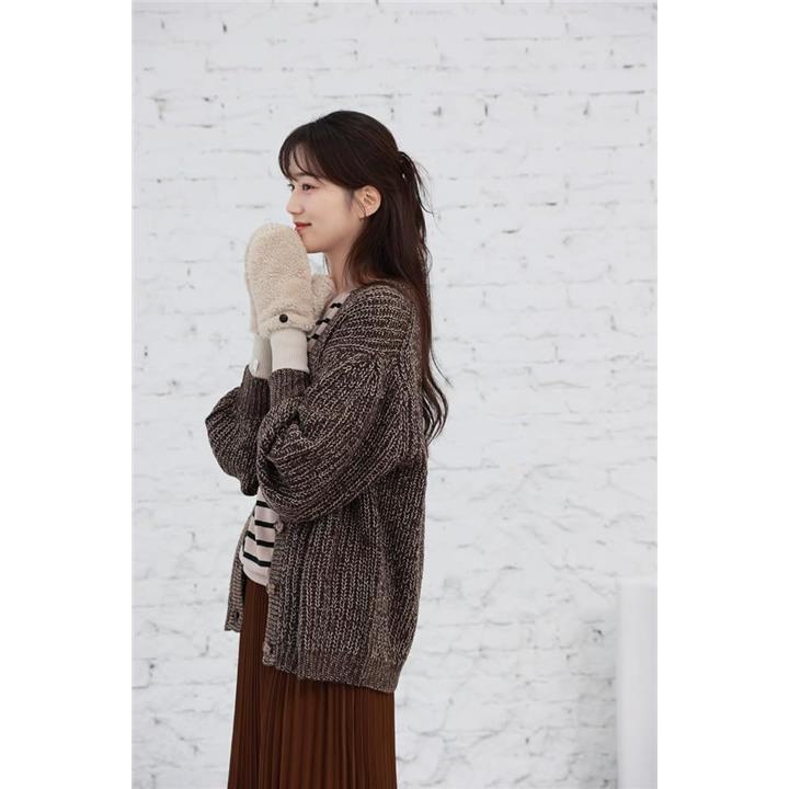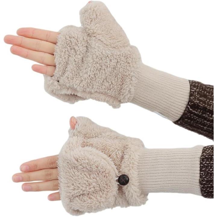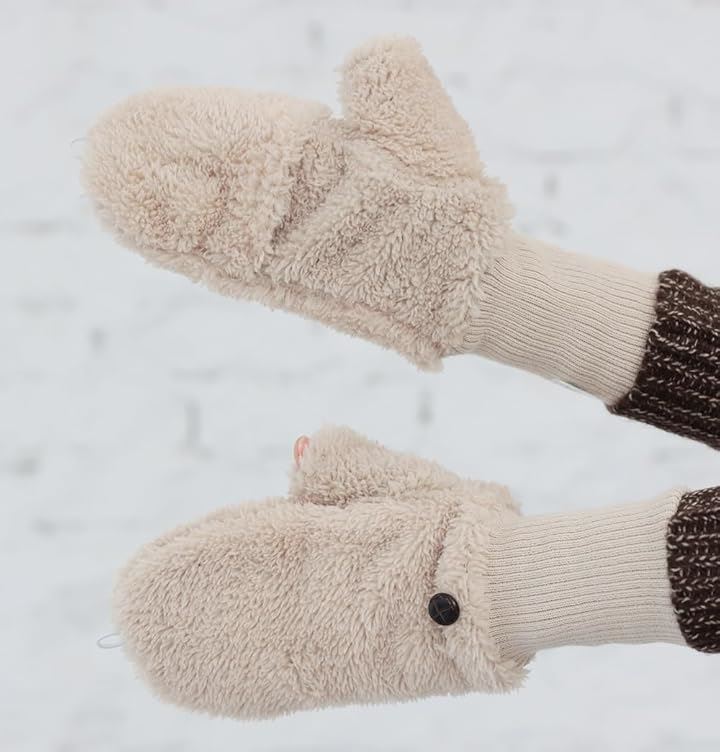 ボア フード ニット カウス 手袋 外も 内も ふわふわ モコモコ レディース ファー ロゴケース付