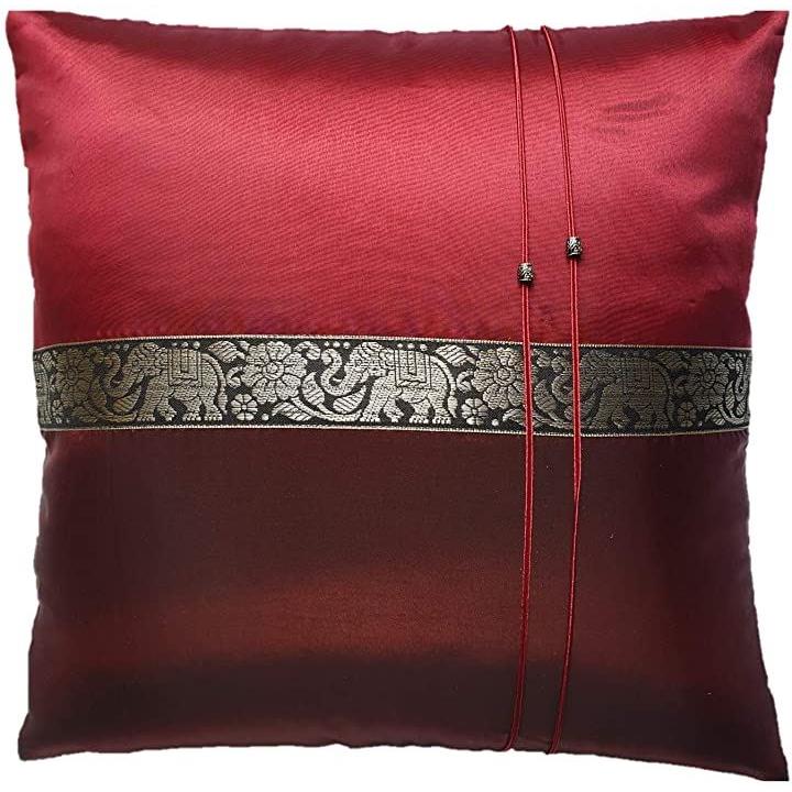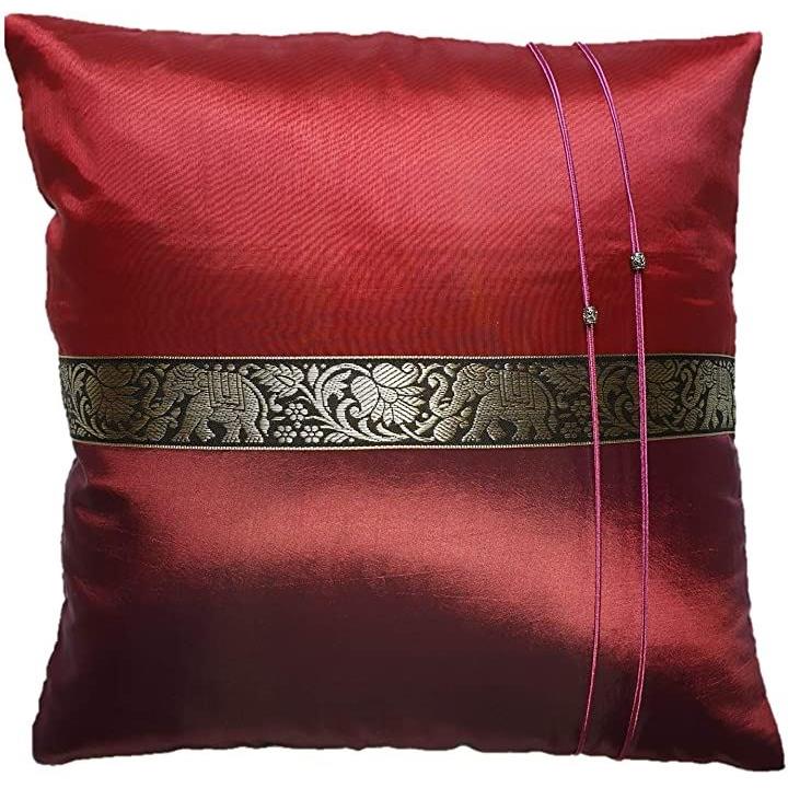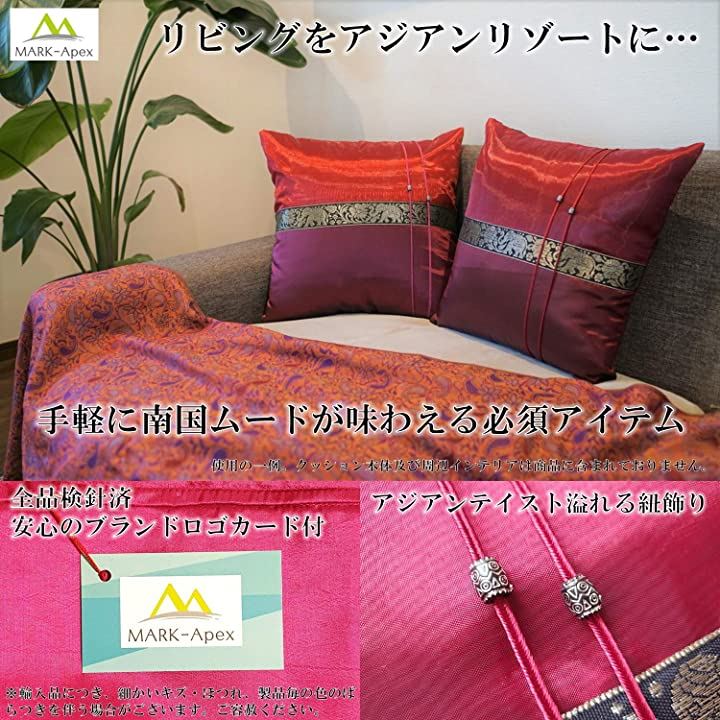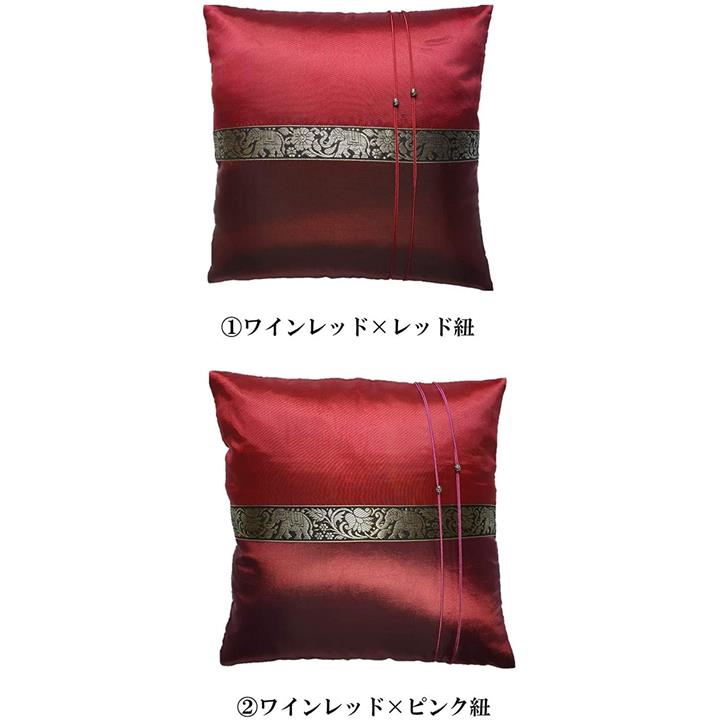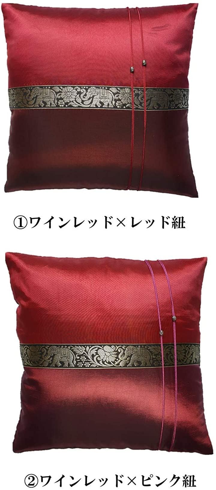 クッションカバー 40x40 象柄帯 飾り紐付き アジアン インテリア エスニック タイ おしゃれ