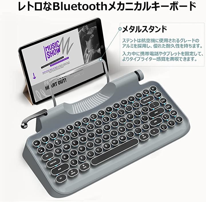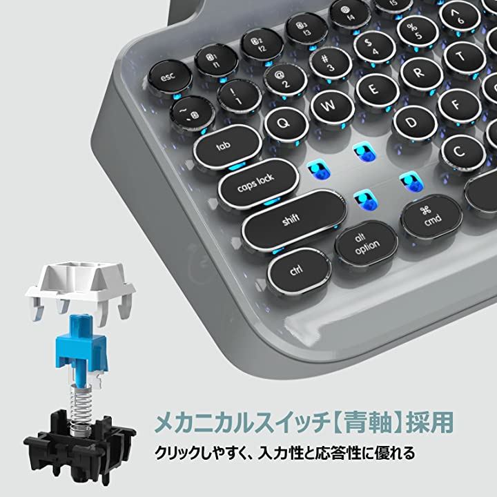 互換品 メカニカルキーボード ゲーミングキーボード 青軸 タイプライター キーボード ワイヤレス&USB有線 同時3台デバイス対応 グレー |