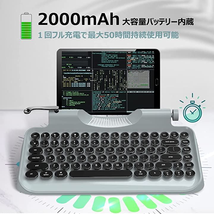 ・「50H長時間使用&幻想的なバックライト」充電式の2000mAhバッテリーが組み込まれていますので、1回のフル充電で最大50時間持続使用可能で、Bluetooth接続状態のままでも充電切れを気にすることなく、思う存分タイピング作業ができます。