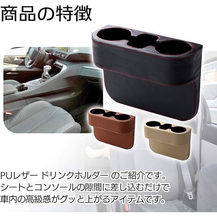 エスネット カー用品 ドリンク カップホルダー 車 スマホ スタンド サイド 車載 ドライブ 小物 入れ トレイ ML-249-DR