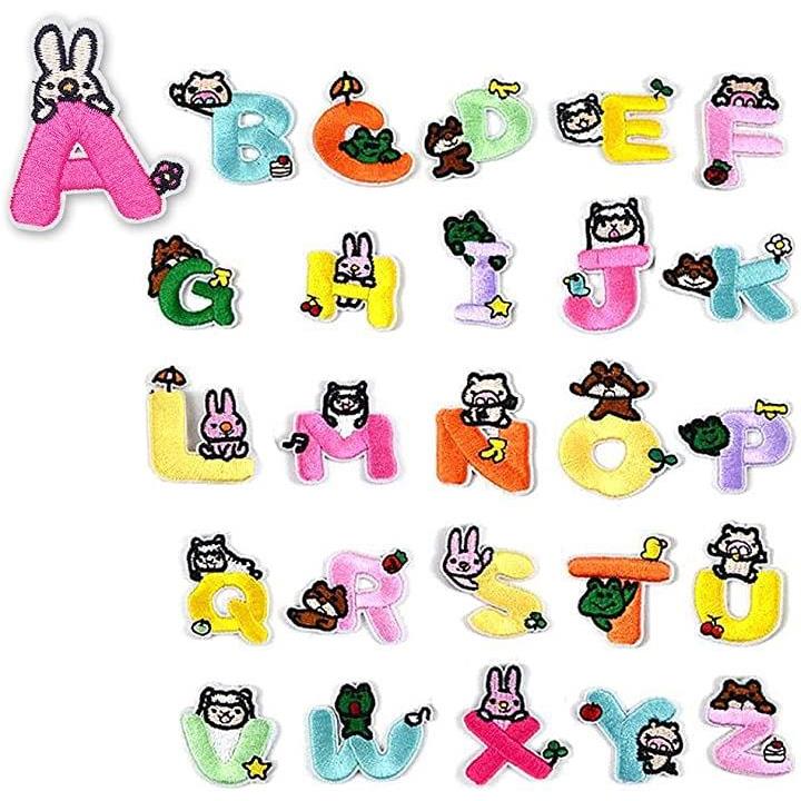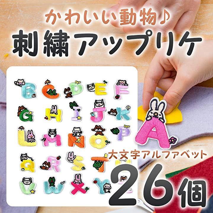 刺繍 ワッペン アップリケ ハンドメイド 補修 アイロン接着 可愛い アルファベッド 26点セット