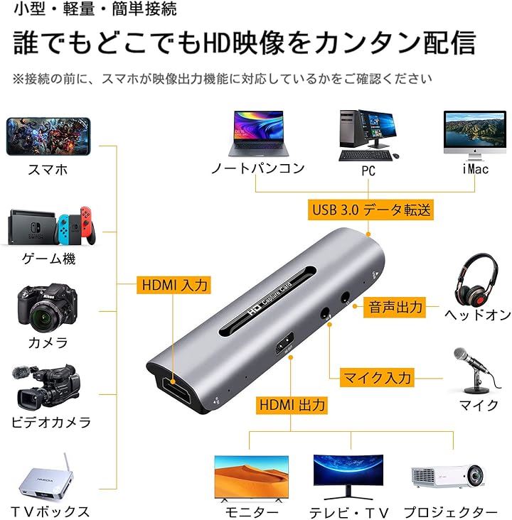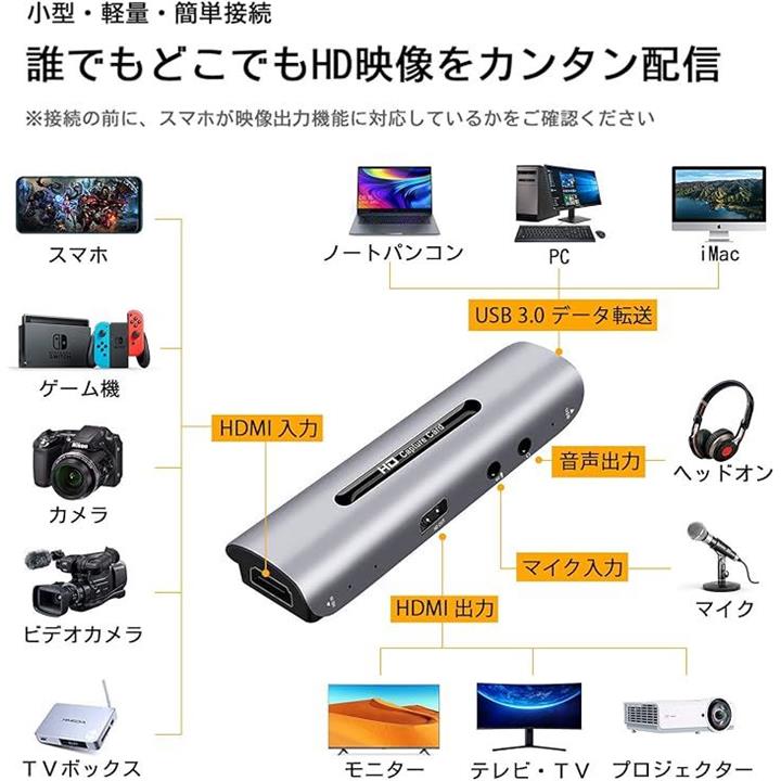 互換品 hdmi キャプチャーボード 4k パススルー対応 カメラ ゲーム実況生配信、画面共有、ライブ会議、録画に適用 外付け型 CJK-Z35 |
