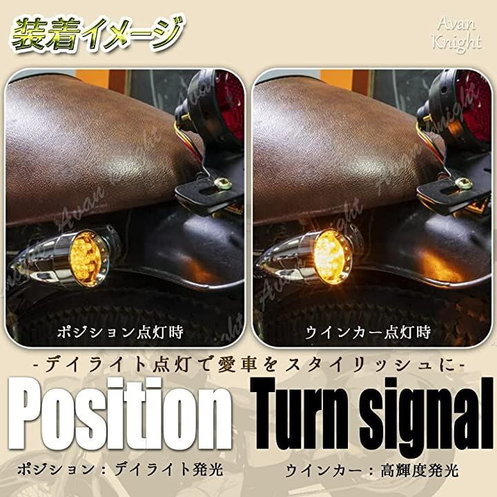 こちらの弾丸型ウインカーなら、今流行りのコンパクトな設計ながらも、LED独特のインパクトのある発光のおかげで、ウインカー本来の役割である十分な視認性をしっかりと確保することができます。