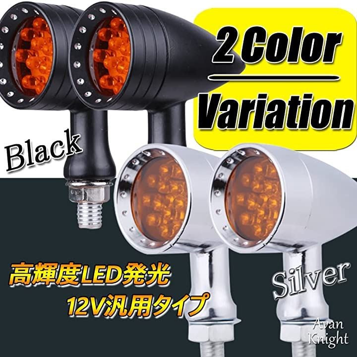 [Avan Knight] バイク LED 弾丸 ウインカー ライト ハーレー ドラッグスター 2個 4個 セット ブレット ウィンカー ブラック シルバー フロント リア テール ランプ サイド バック スポーツスター アメリカン 汎用 レギュレター レギュレーター 流れる ステー ヘッド テープ KRB069 (シルバー 2個セット) |