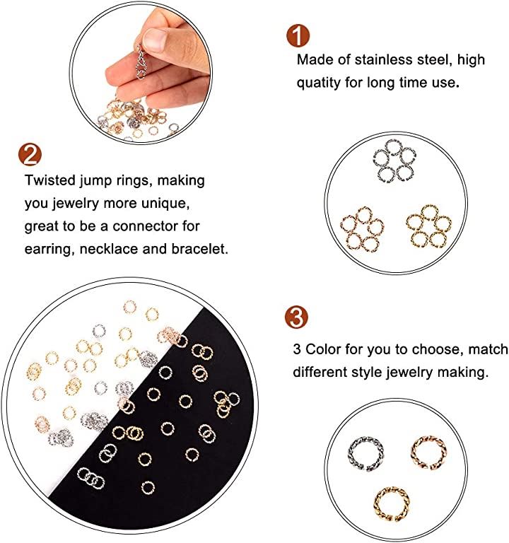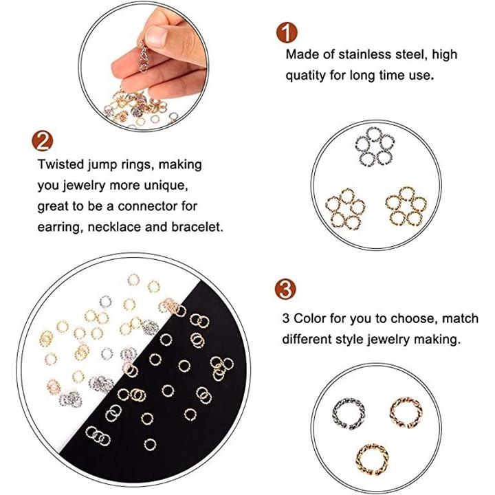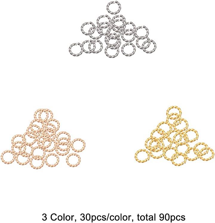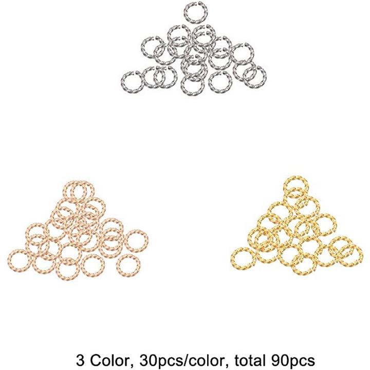 90個 3色 6mmの丸カン ツイスト ねじれのカン 304ステンレス製リングキット