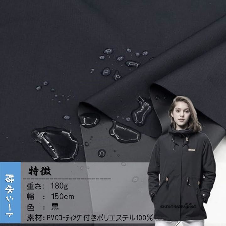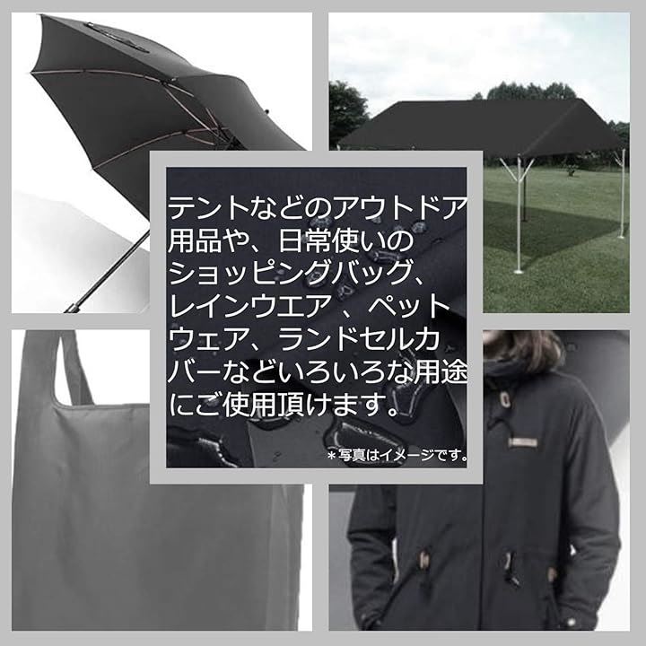 互換品 防水生地 布 防水シート 薄手 無地 撥水 透湿性 アウトドア カイト バッグ作り 幅広 幅150cm 1mカット ブラック