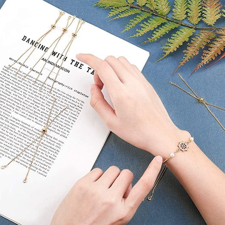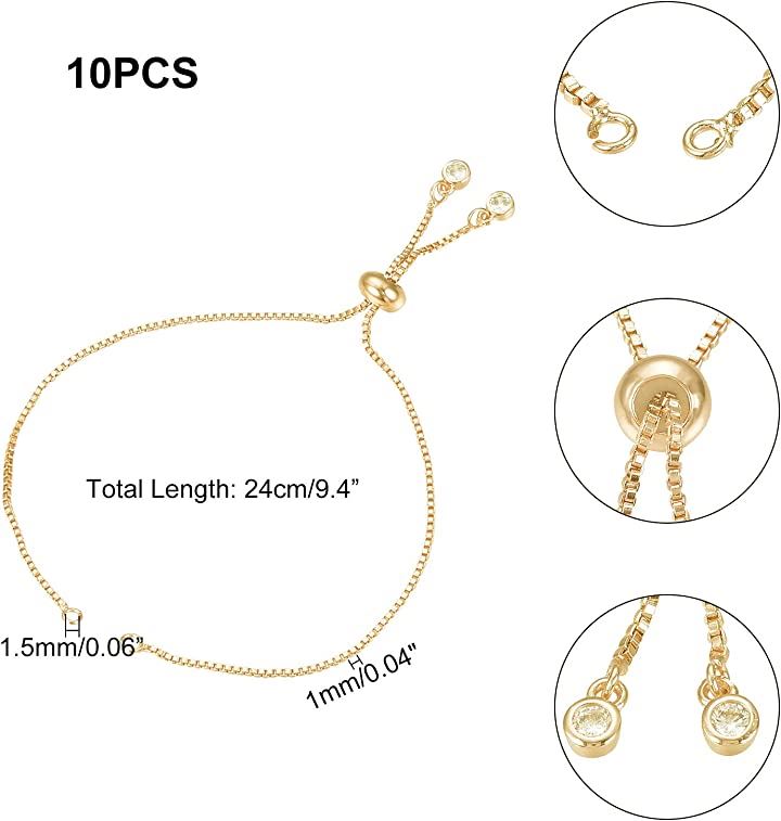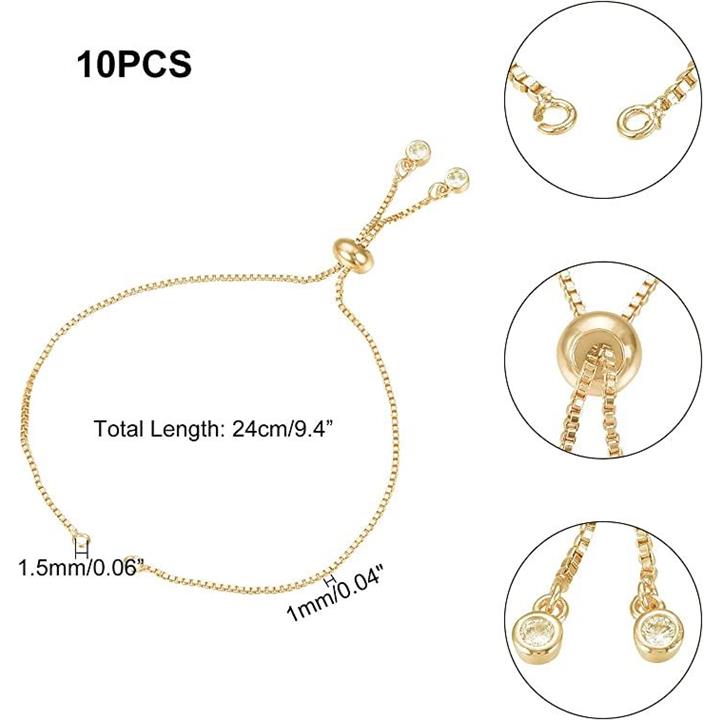 約10本 24cm ゴールド 調整可能ブレスレット ラインストーン付き