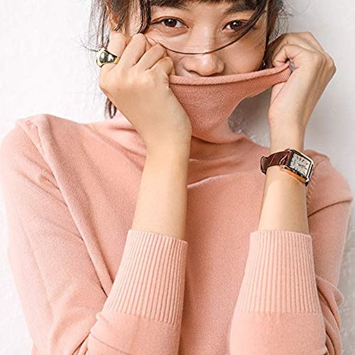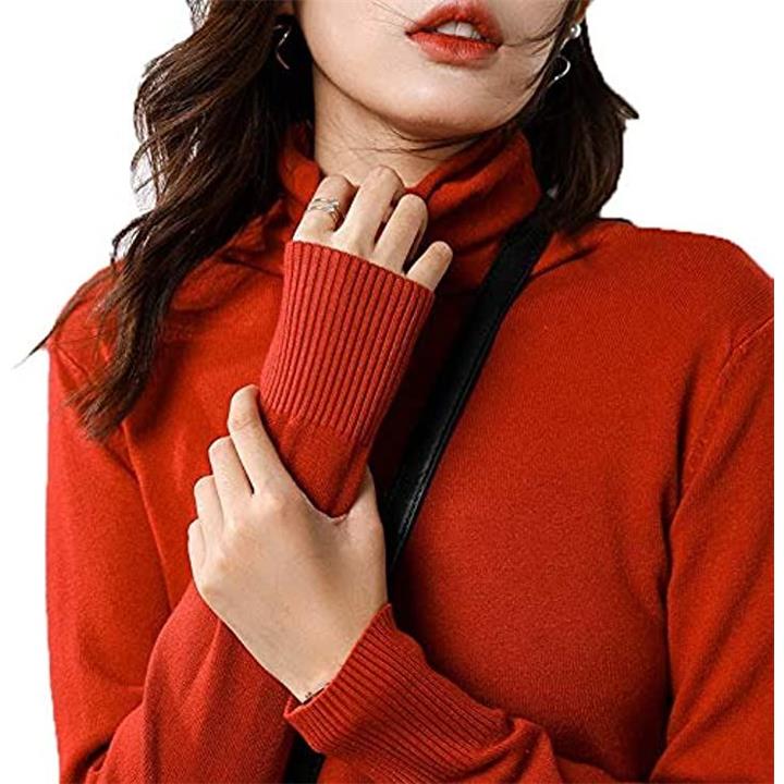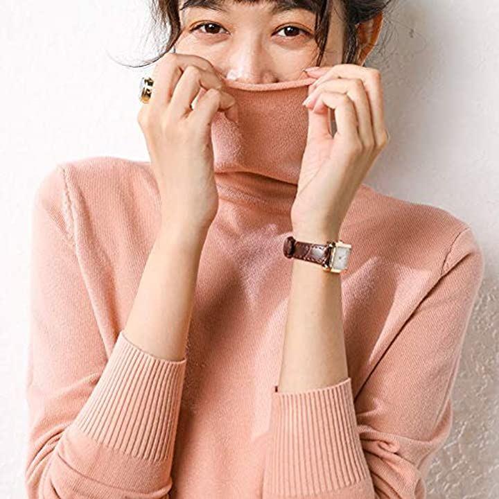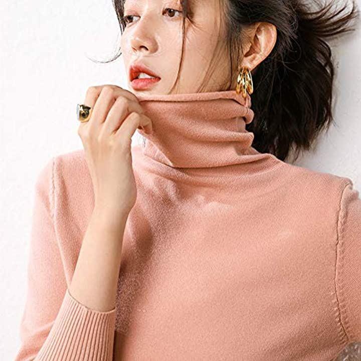 ハイネックストレッチセーターレディース 無地 長袖 ニット