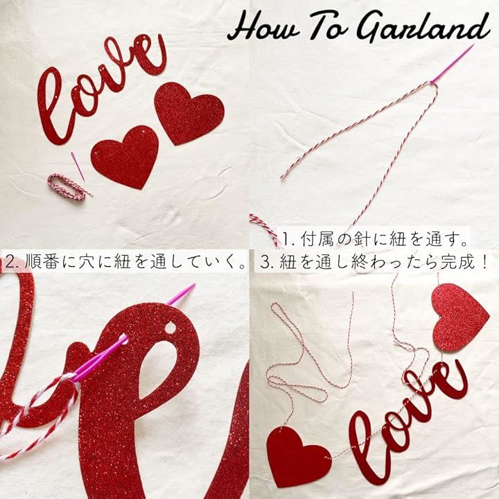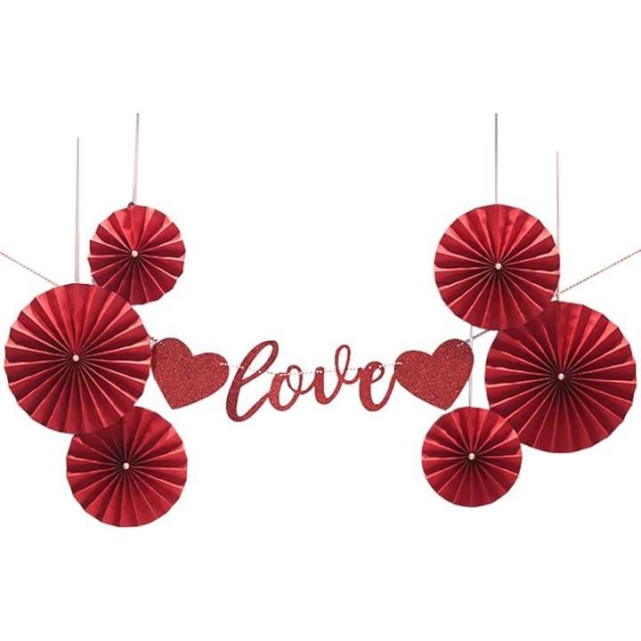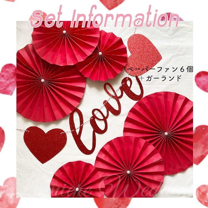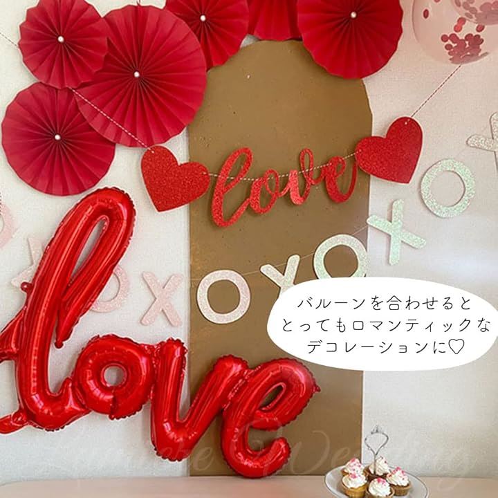 バレンタイン 飾り 装飾 飾り付け ガーランド ペーパーファン love スクリプト 赤 a-b389 Passion