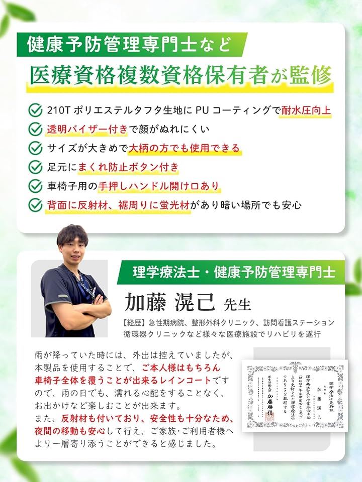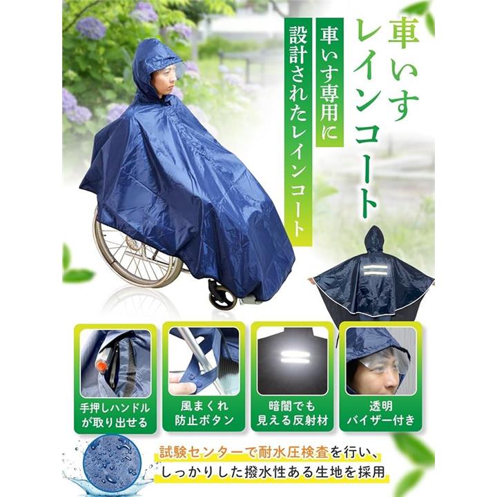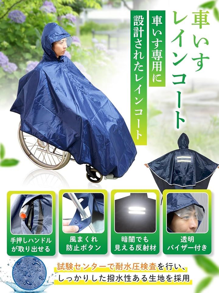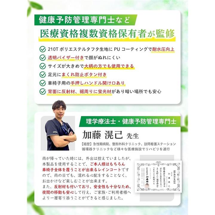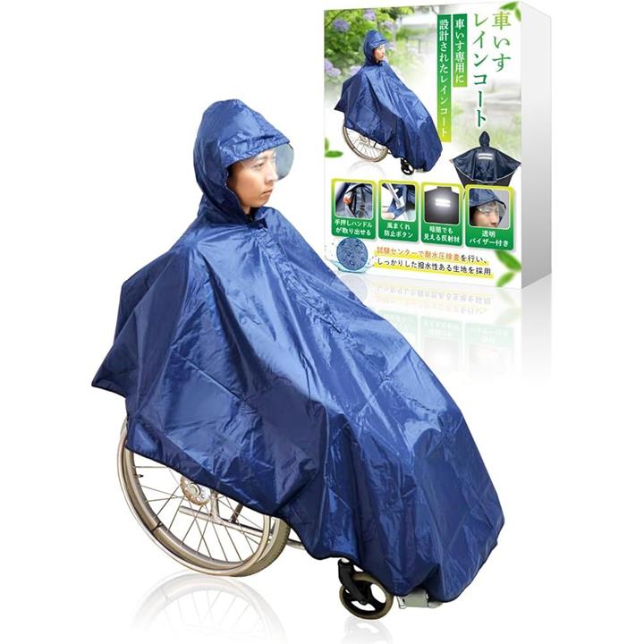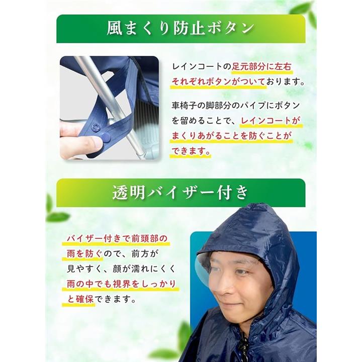 理学療法士監修 車いすレインコート 車椅子レインコート 収納袋付き 透明バイザーで視界良好 ポンチョ 雨具