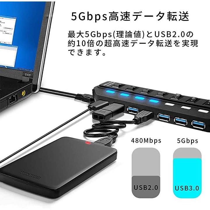 互換品USB3.0ハブ 7ポートハブ 5Gbps高速 充電可能