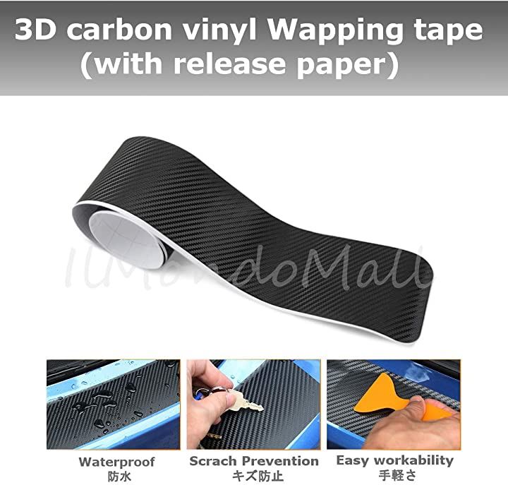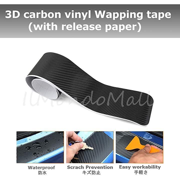 Ilmondomall テープ式 リアルカーボンシート 3D柄 ブラック ステップ バンパー 保護 レーシングストライプ 剥離紙有り (3cmx2m, 3Dブラック) |