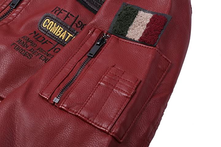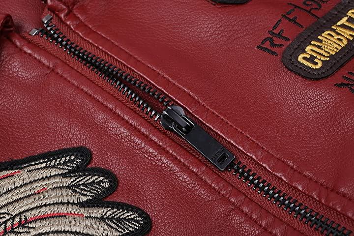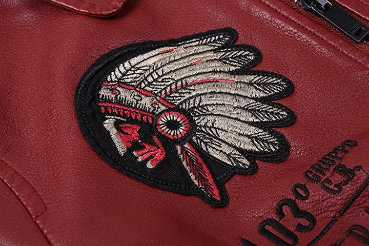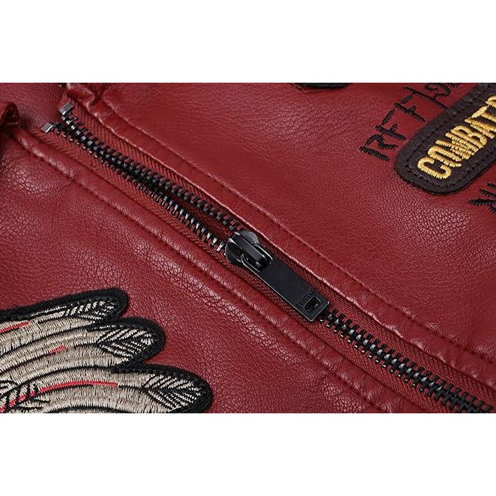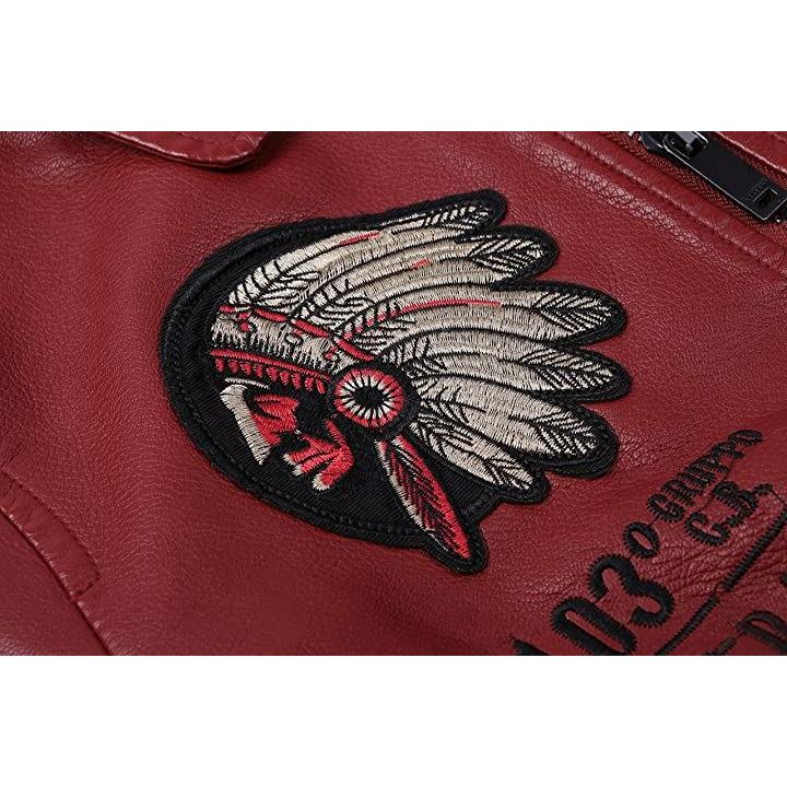 刺繍 裏起毛 ライダース バイク ジャケット 革ジャン 暖かい 防風 防寒 保温 ジャンパー ブルゾン レザー