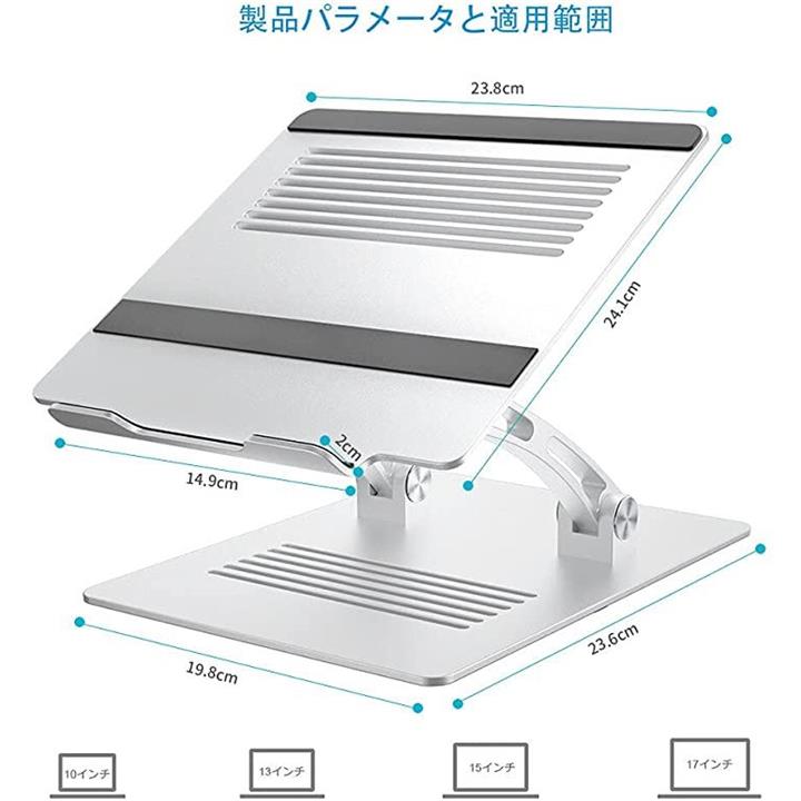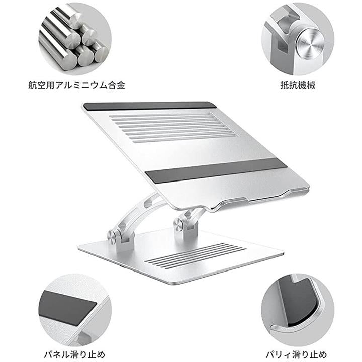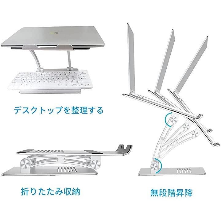 ノートパソコンスタンド パソコン作業デスクきい PCスタンド 折りたたみ式 Macbook/iPad/ノートPC/タブレット 8—17インチに対応 シルバー 20KG荷重