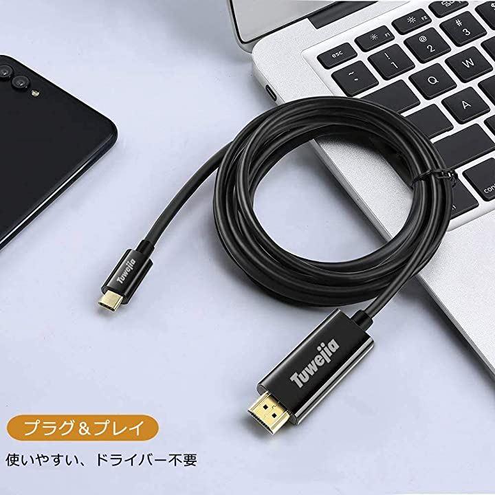 「互換品」USB Type C to HDMI 60Hz 変換ケーブル1.8M Tuwejia Thunderbolt 3 to HDMI 4K高解像度映像出力 (ブラック) |