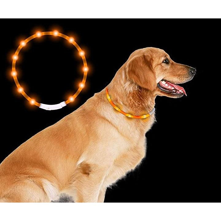 2020最新 犬用光る首輪 発光首輪 usb充電式 柔らかい 軽量 調整可能 ペット 犬 猫 LED光る首輪 安全対策 視認性抜群 3つの発光モード 装着簡単 (オレンジ) |