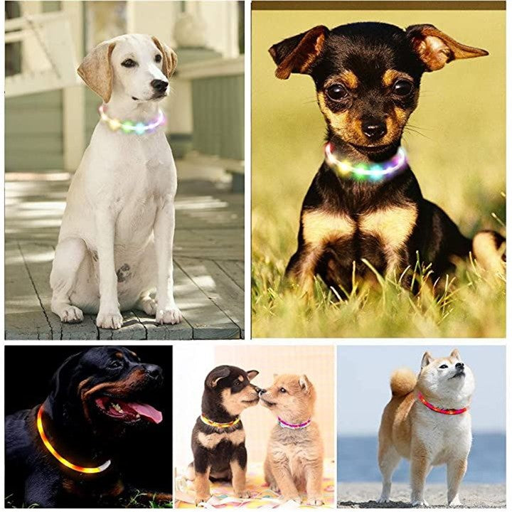 Sazuik 最新型 犬用光る首輪 発光首輪 usb充電式 装着簡単 (七彩) |