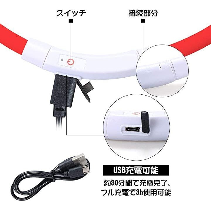 最新 犬用光る首輪 発光首輪 usb充電式 柔らかい 軽量 調整可能 ペット 犬 猫 LED光る首輪 安全対策 視認性抜群 3つの発光モード 装着簡単 |