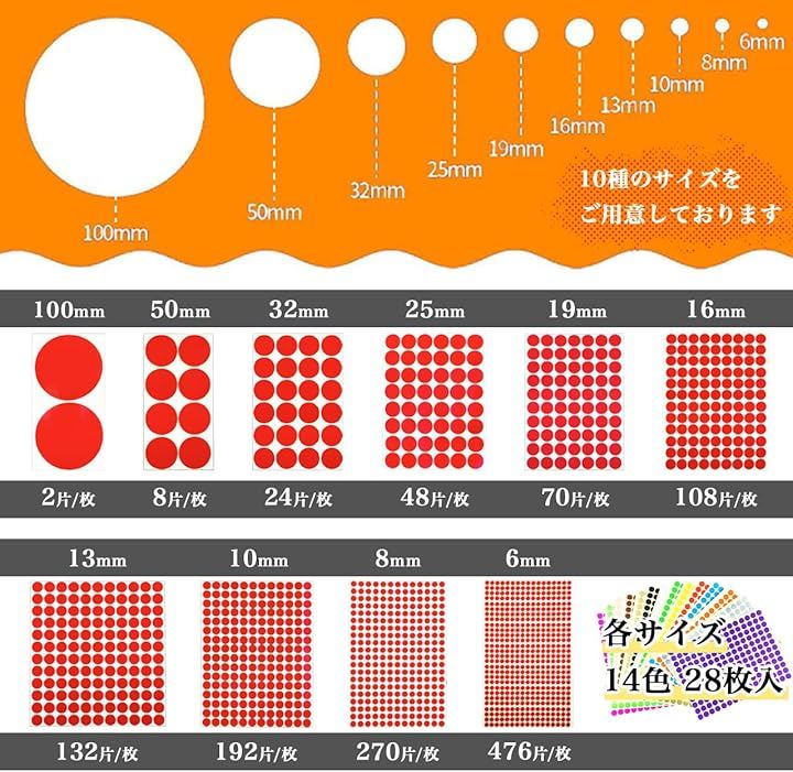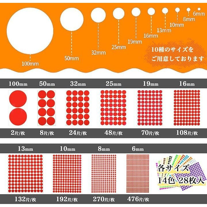 カラーラベル シール 丸型 カラー14種 28枚セット