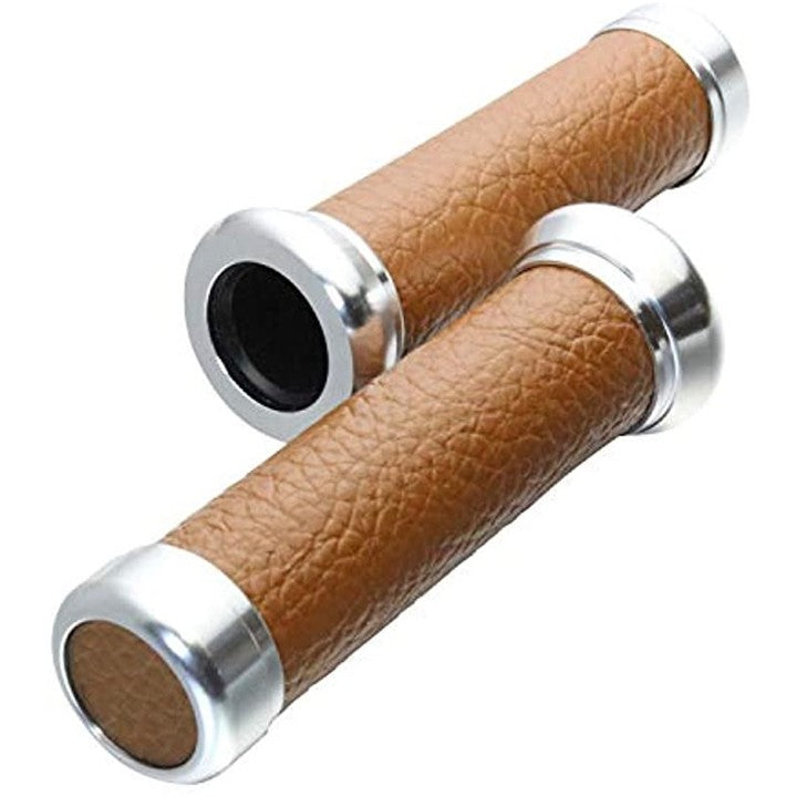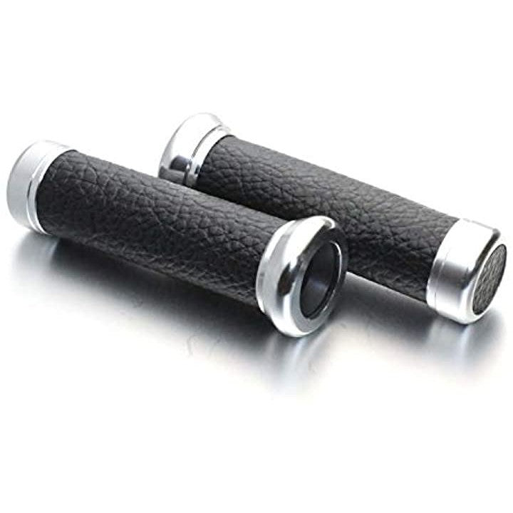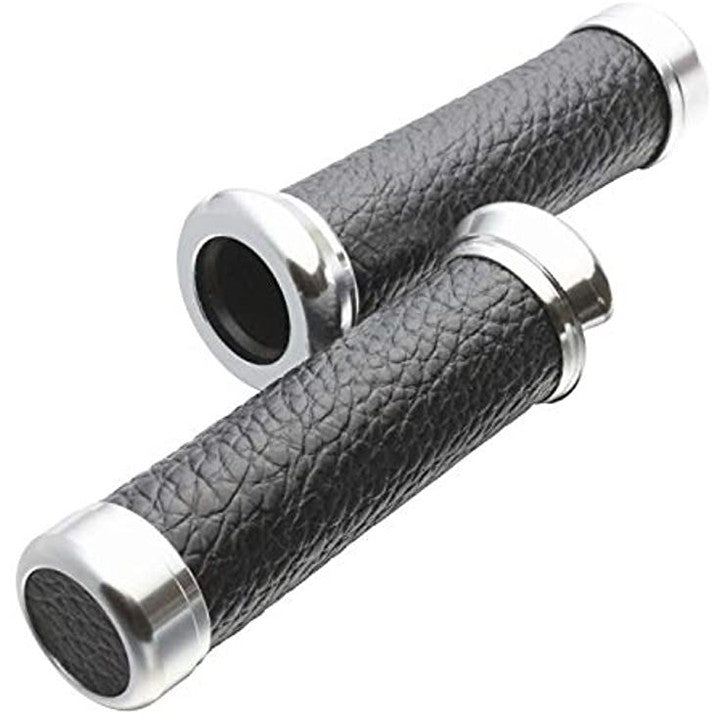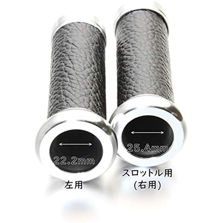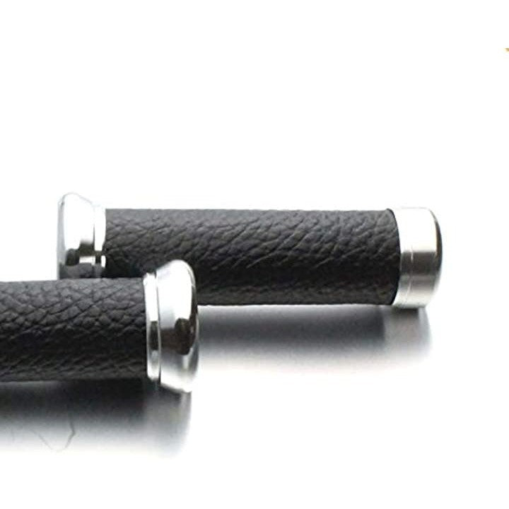 バイク グリップ バーエンド付き ハンドル カスタム アルミ レザー 22.2 mm