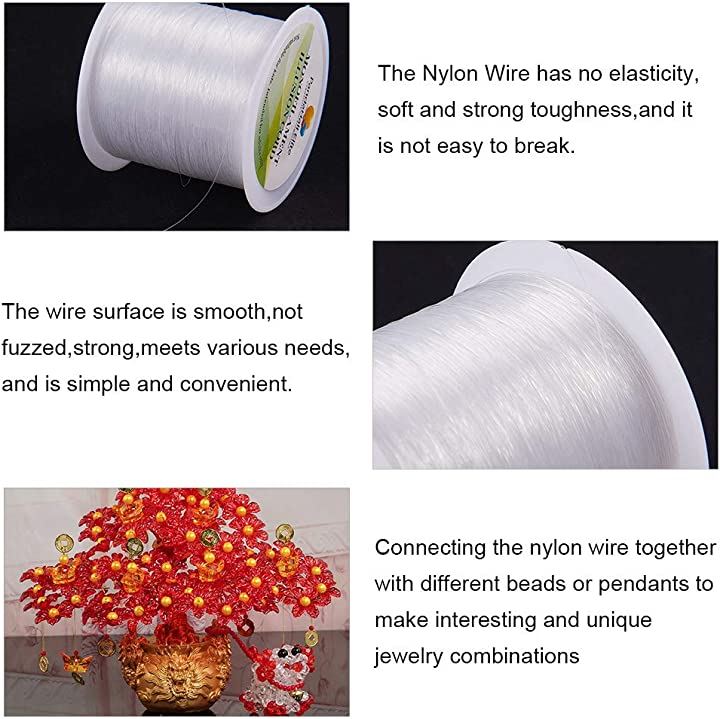 ナイロン糸 テグス 太さ0.2mm 約130m巻 無色透明 ブレスレット用 繊維入り アクセサリーパーツ 手作り素材