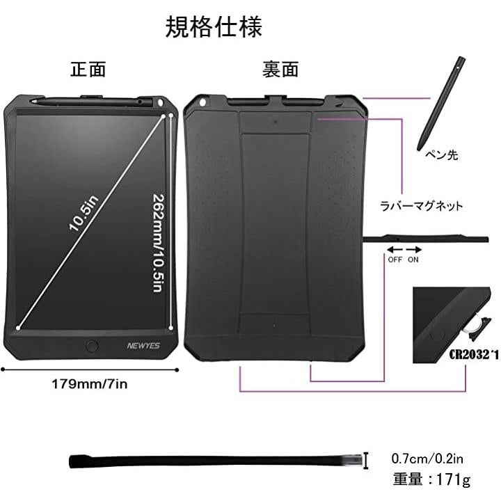 互換品電子メモ 電子パット 電子黒板 デジタルメモ ロック機能 10.5インチ