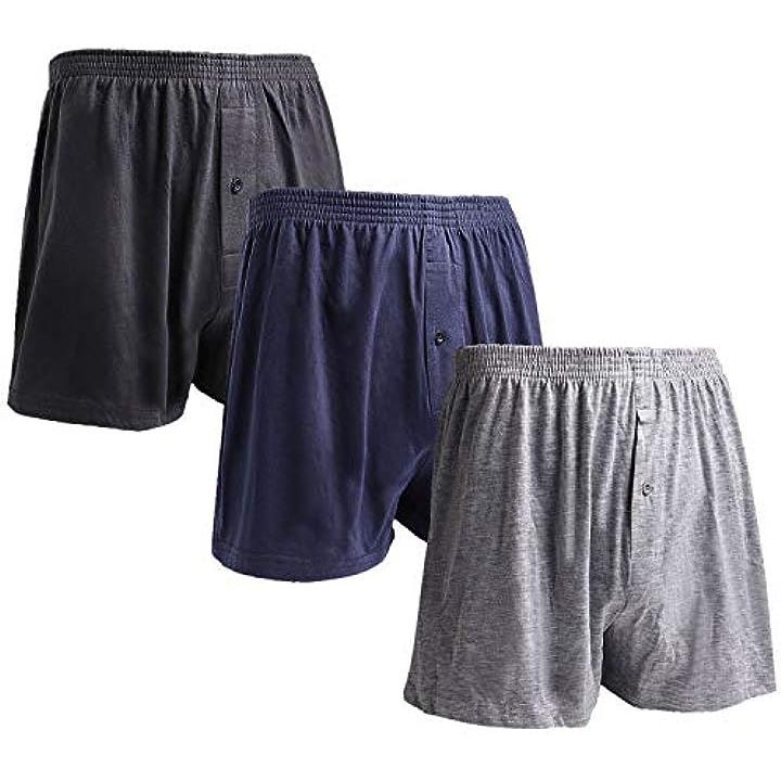 mom(マム) ニット トランクス メンズ パンツ 無地 3枚セット M L LL サイズ 肌着 吸水速乾 抗菌加工 前開き ボタンあり (グレー3枚, L) |