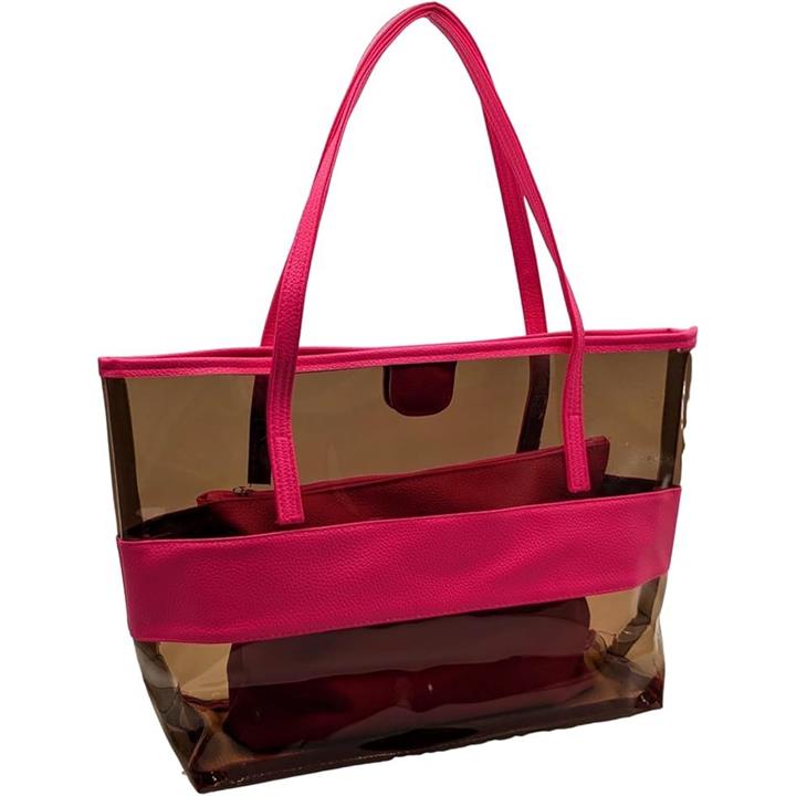 [APOSITV]クリアバック 透明バック ビニール トート ポーチ付き 2way 肩掛け バック pvc (ピンク) |