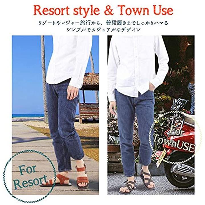 [B.H. Select] 本革 サンダル メンズ コンフォート フラットサンダル リゾート シューズ 大人 コーデ 男女兼用 (S(25-26cm), 後ろタイプストラップ(ダークブラウン)) |
