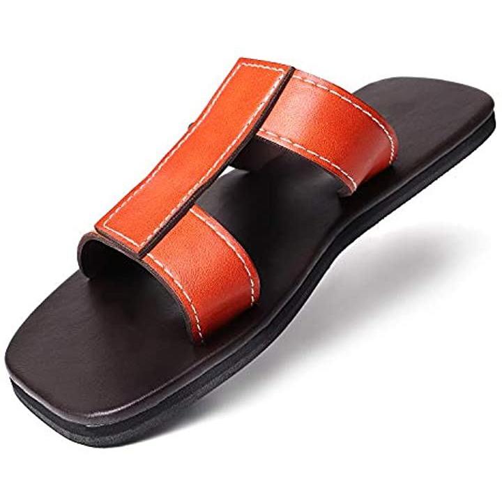 [B.H. Select] 本革 サンダル メンズ コンフォート フラットサンダル リゾート シューズ 大人 コーデ 男女兼用 (M(26-27cm), サンダル(オレンジ)) |