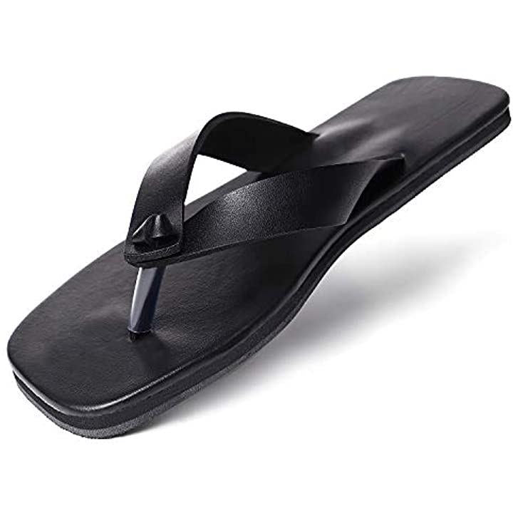 [B.H. Select] 本革 サンダル メンズ コンフォート フラットサンダル リゾート シューズ 大人 コーデ 男女兼用 (M(26-27cm), ビーチサンダル(ブラック)) |