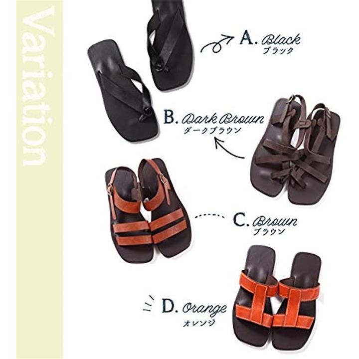 [B.H. Select] 本革 サンダル メンズ コンフォート フラットサンダル リゾート シューズ 大人 コーデ ユニセックス (S(25-26cm), C.バックストラップ(ブラウン)) |