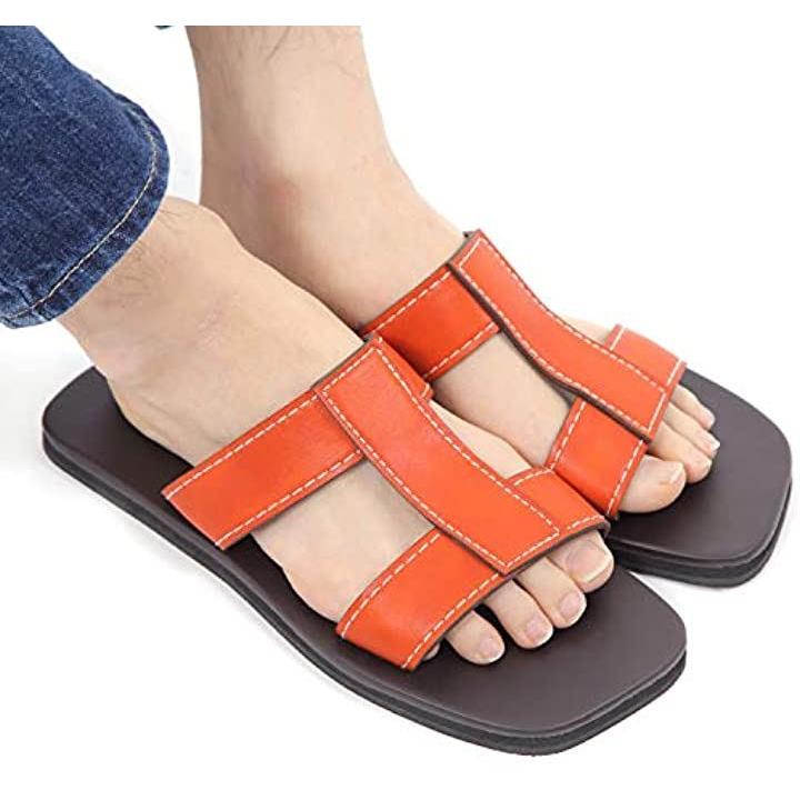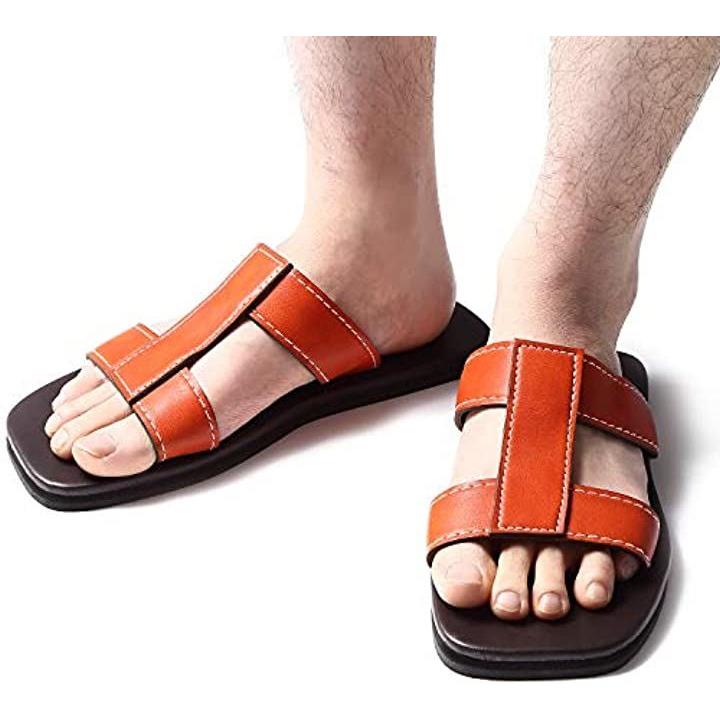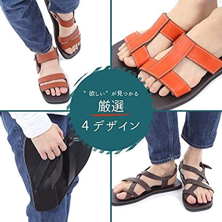 [B.H. Select] 本革 サンダル メンズ コンフォート フラットサンダル リゾート シューズ 大人 コーデ 男女兼用 (S(25-26cm), サンダル(オレンジ)) |