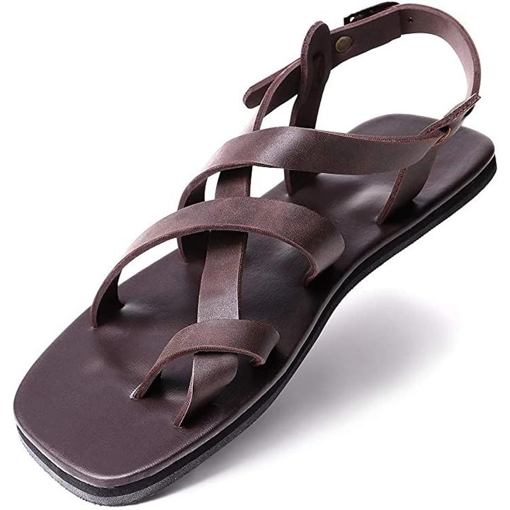 [B.H. Select] 本革 サンダル メンズ コンフォート フラットサンダル リゾート シューズ 大人 コーデ 男女兼用 (M(26-27cm), 後ろタイプストラップ(ダークブラウン)) |