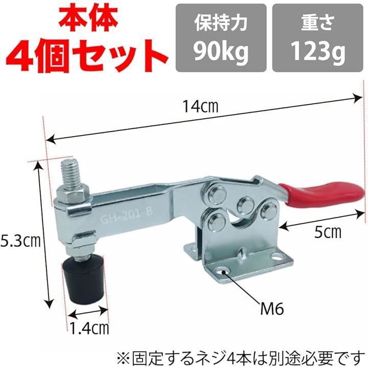 トグルクランプ 下方押え型トグルクランプ 木材 金属 固定 保持 補助 工具 DIY 4個セット
