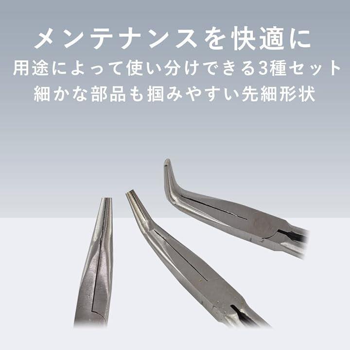ラジオペンチ プライヤー ロング ロングノーズプライヤー 先細 先曲 手芸 作業 工具 精密 整備 DIY 3本セット
