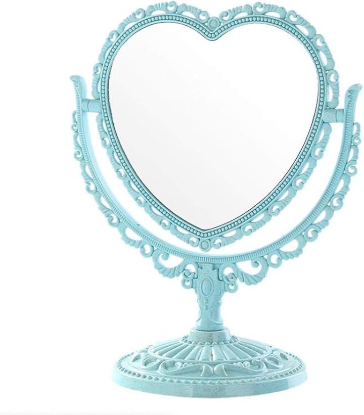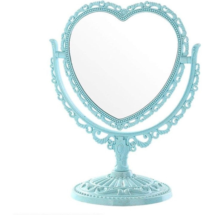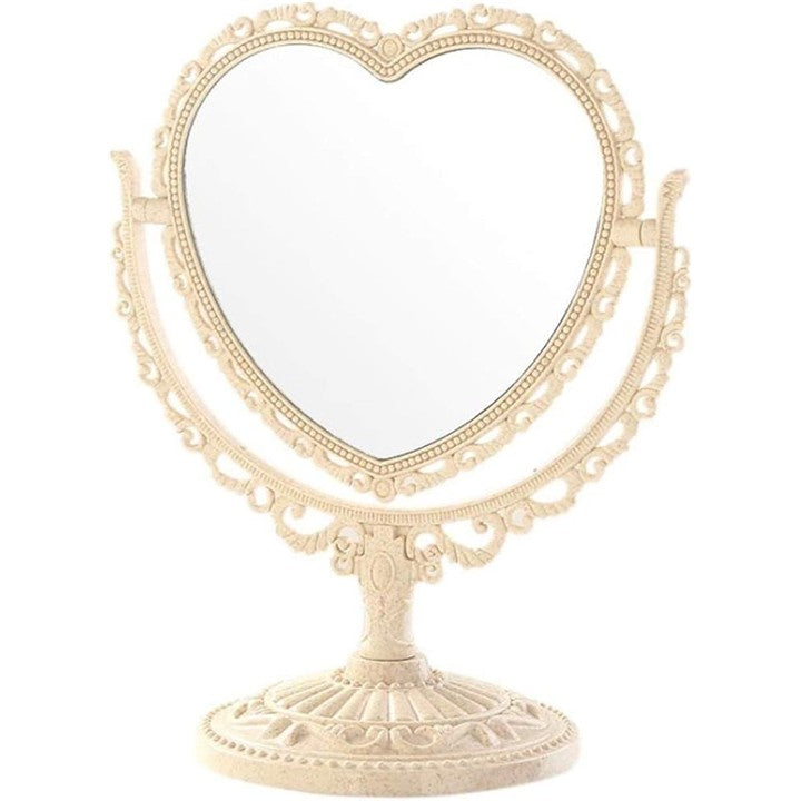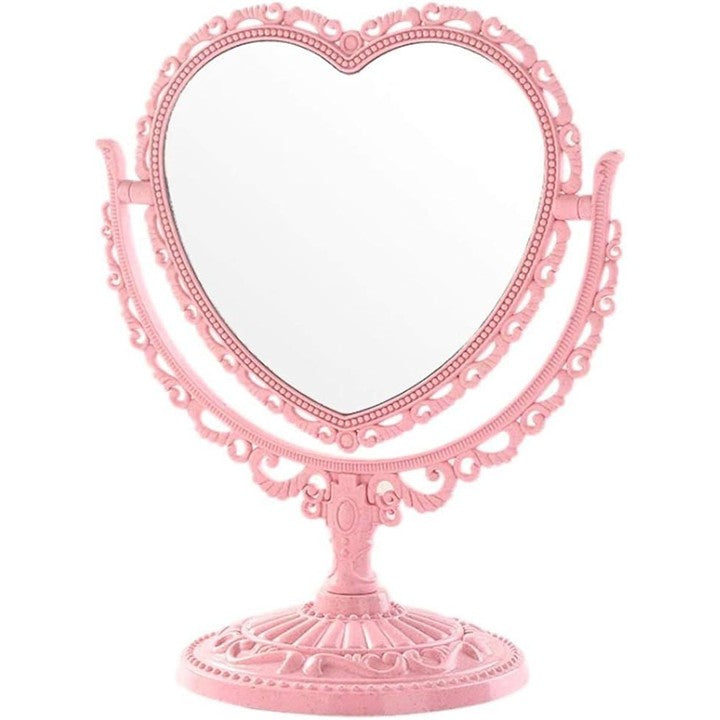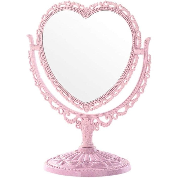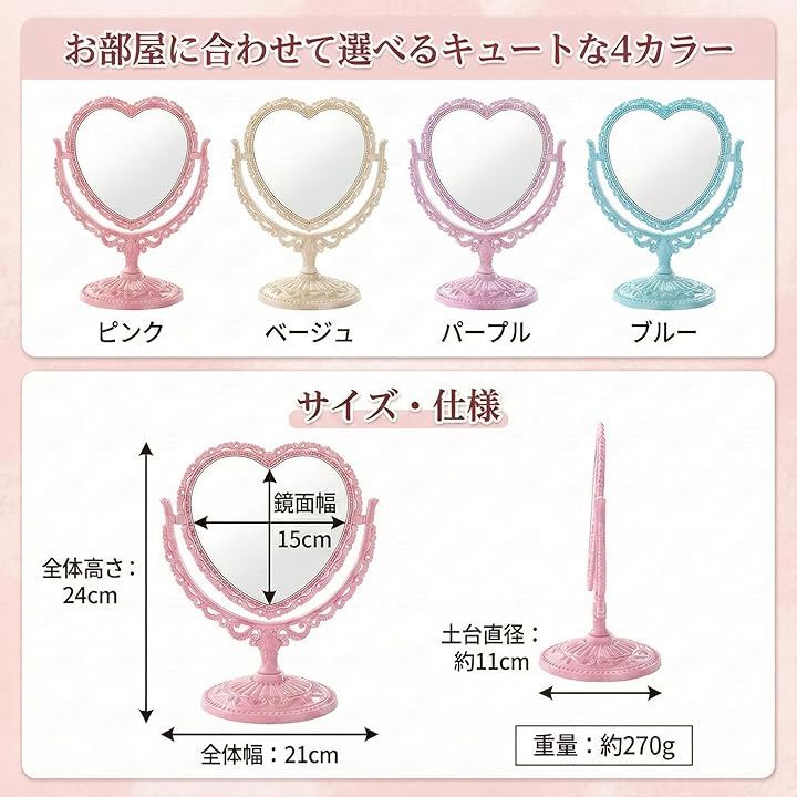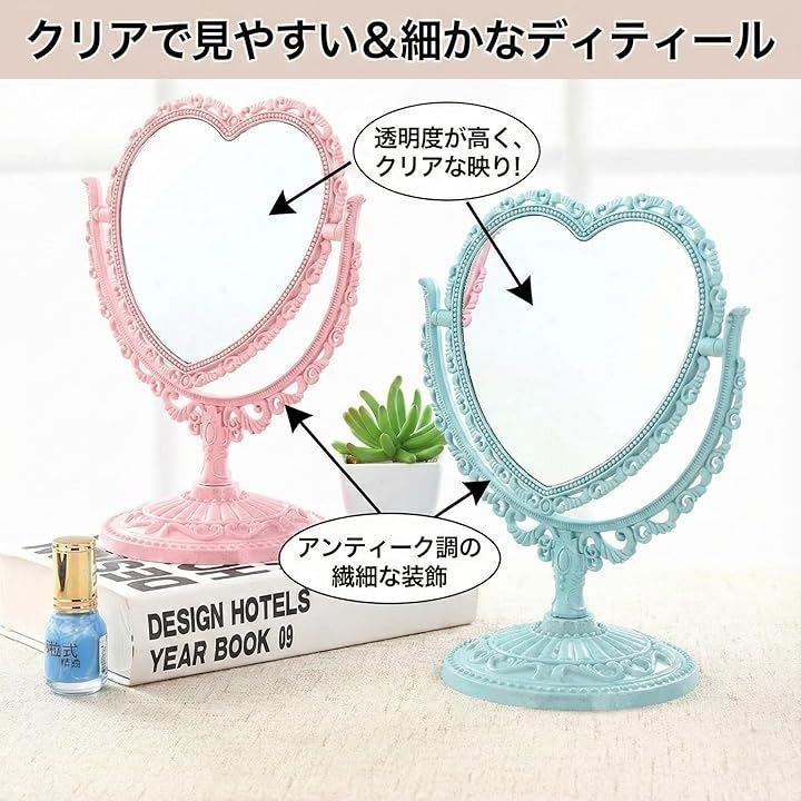 卓上 ミラー ハート 型 かわいい お洒落 メイク アップ コスメ 美容 化粧 鏡 スタンド 360度回転