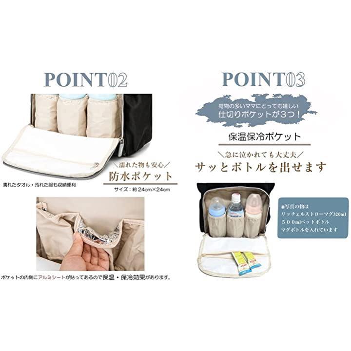ベビー用品 収納 リュック レディース 大容量 保温ポケット 盗難防止ポケット付き 防水