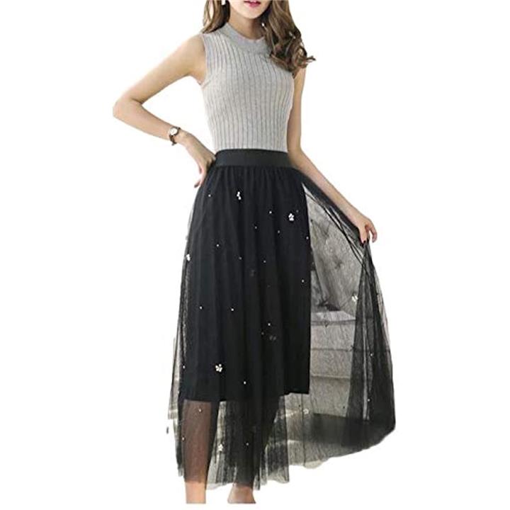 [アルジェント アパ] ニット ノースリーブ 薄手 Uネック 夏 秋 トップス サマー カットソー 軽い 5色 M~XL (ブラック, M) |