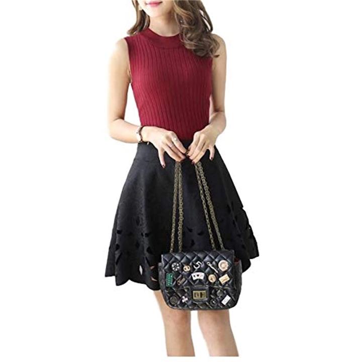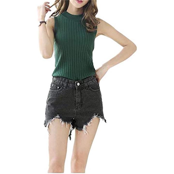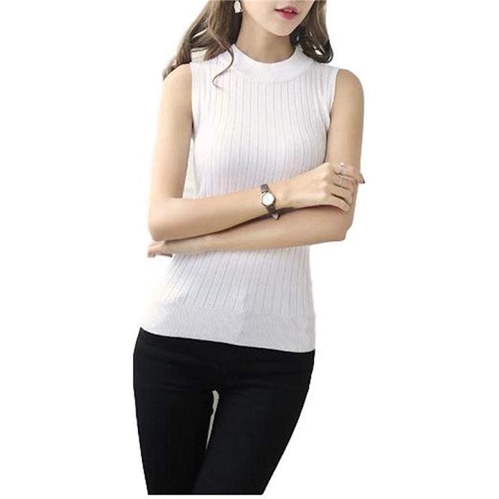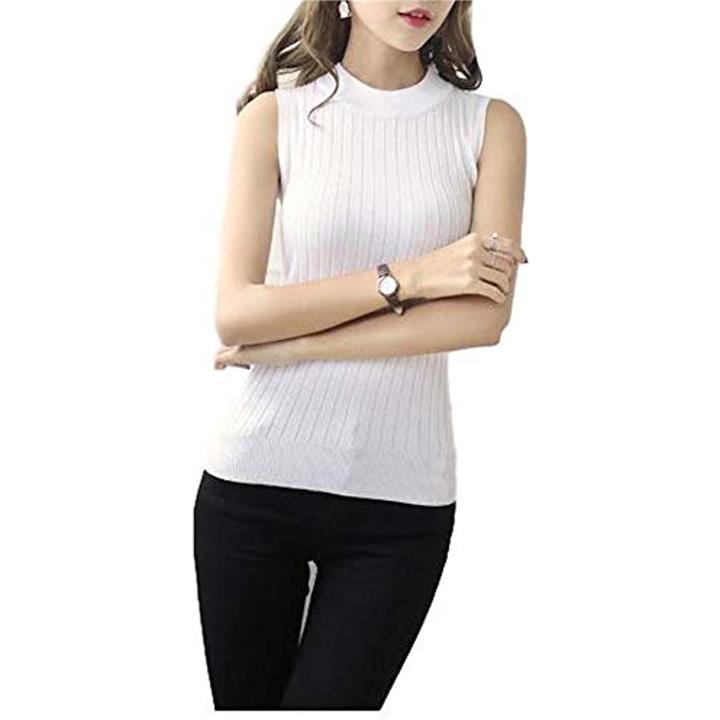 伸縮性のあるニット素材で体のラインにフィットせさ、セクシーに見せてくれる、細身のノースリーブニットカットソーです。